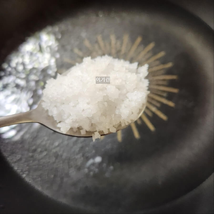 👉우리가 고기 구울 때 위에서 후추 뿌리듯이 뿌려줬다. 약 구운 소금은 티스푼으로 0.5 양이다.