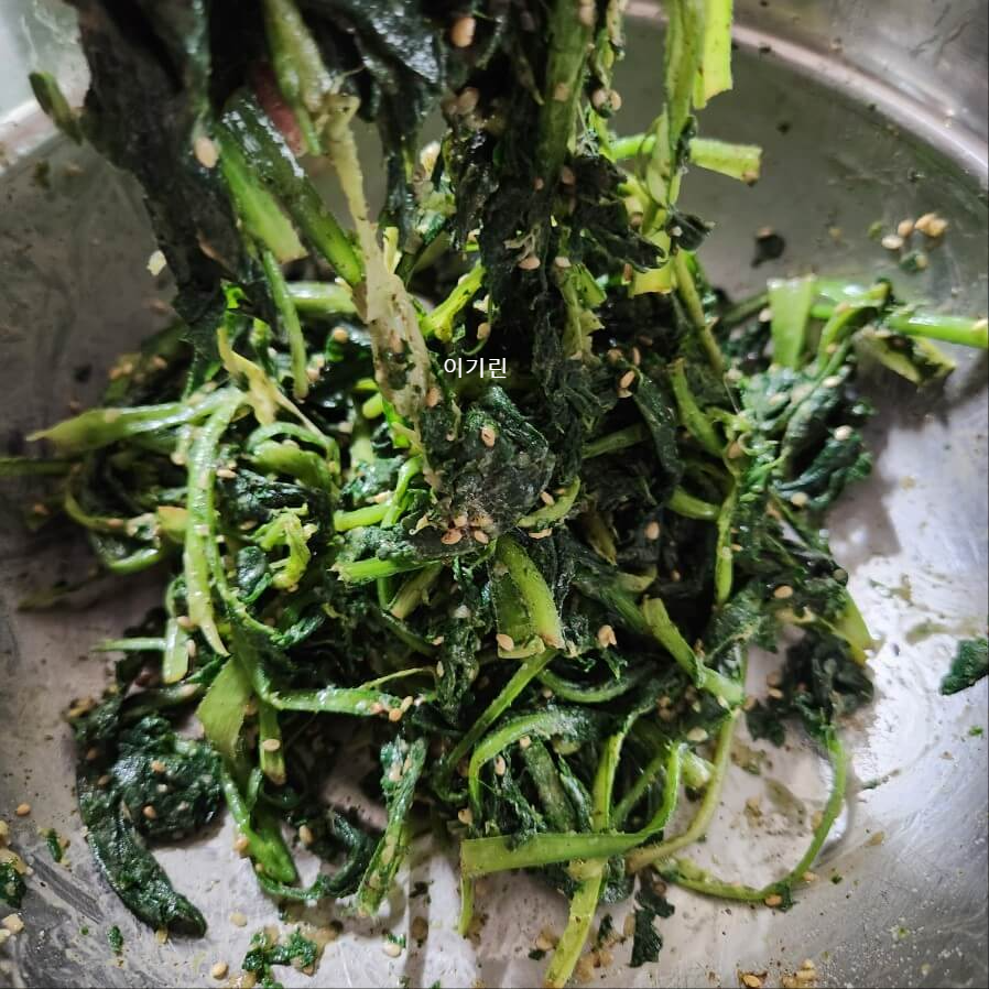 👉이때 들깨가루 또는 들기름을 추가로 넣어주고 버무려 주면 된다.