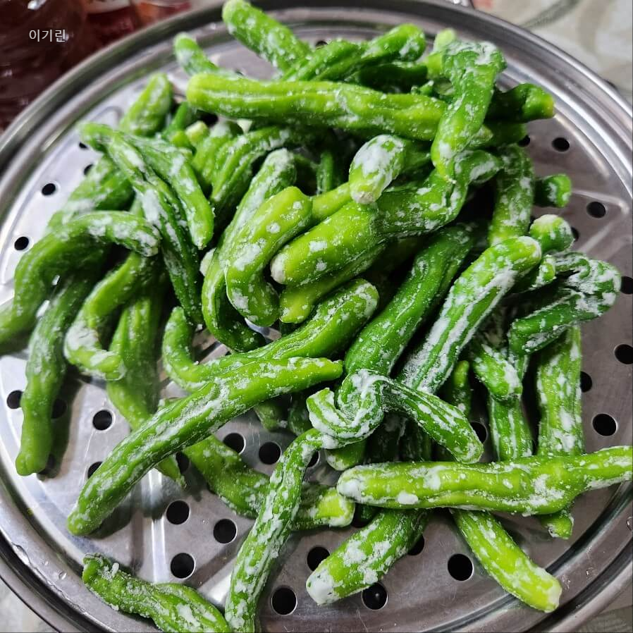 ✅찜기에 물을 넣고 끓여준 다음 전분가루 잘 묻은 꽈리고추를 쪄주면 된다.