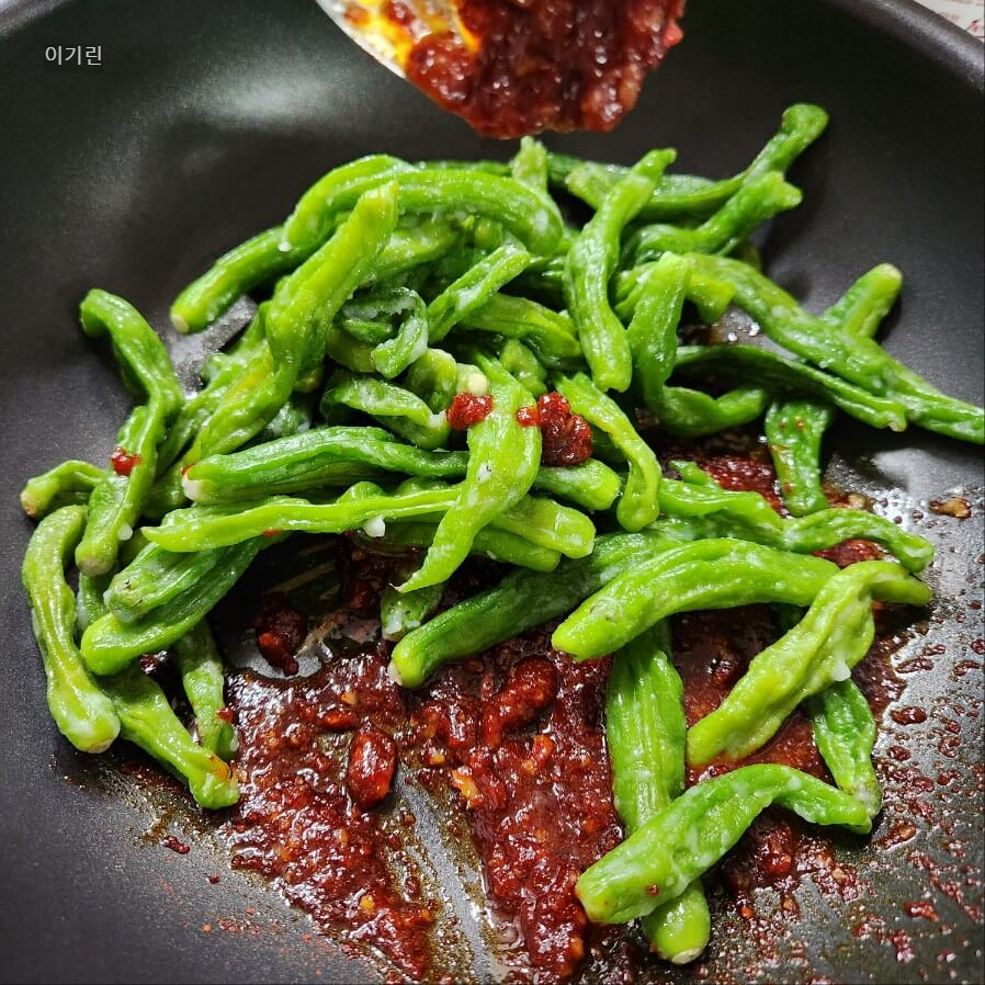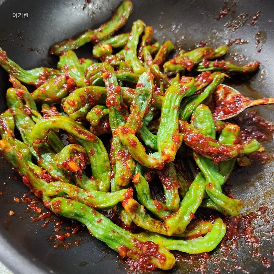 ✅중간에 한두번 꽈리고추 양념을 묻히기 위해 섞어준다.