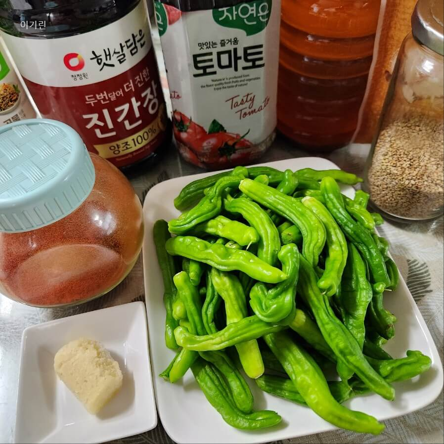 - 쌀가루, 꽈리고추 1팩 400g, 고춧가루, 들기름, 매실액, 올리고당, 진간장, 통깨, 다진마늘,