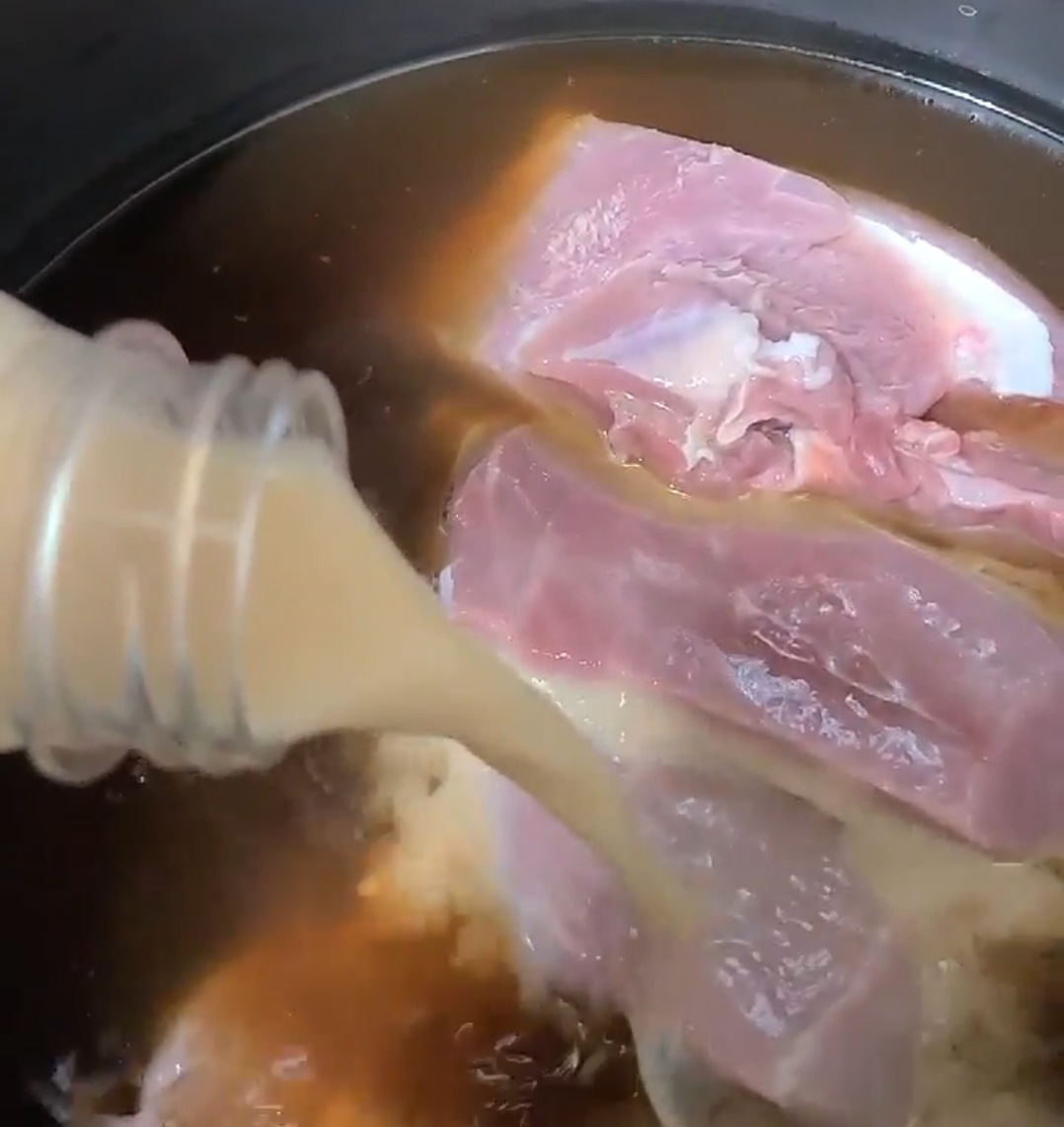 물 500ml (계량컵이 없으신 분들은 일반적으로 편의점에서 파는 500ml 한 병을 통째로 넣어주세요.), 간장 150ml (종이컵 기준으로 2/3 정도 넣어주시면 좋아요. 종이컵 반이 90ml, 가득히 180ml 인 점 참고해주세요.^^), 대왕 요구르트 280ml, 양파 두 개 (껍질을 깨끗이 씻어서 껍질 째 넣는 것도 괜찮습니다.)해서 넣어주시면 됩니다.