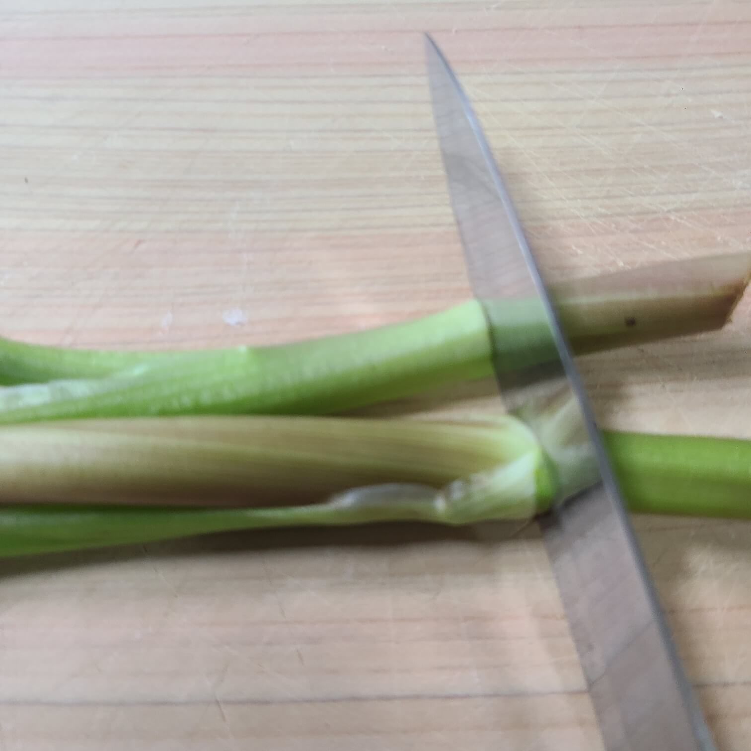 1. 미나리는 누런잎, 검은색으로 변한 잎들을 모두 자르고, 미나리의 밑 뿌리 부분은 질겨서 먹지 못하기 때문에 3cm 정도 자르면서 다듬어 주면 된다.