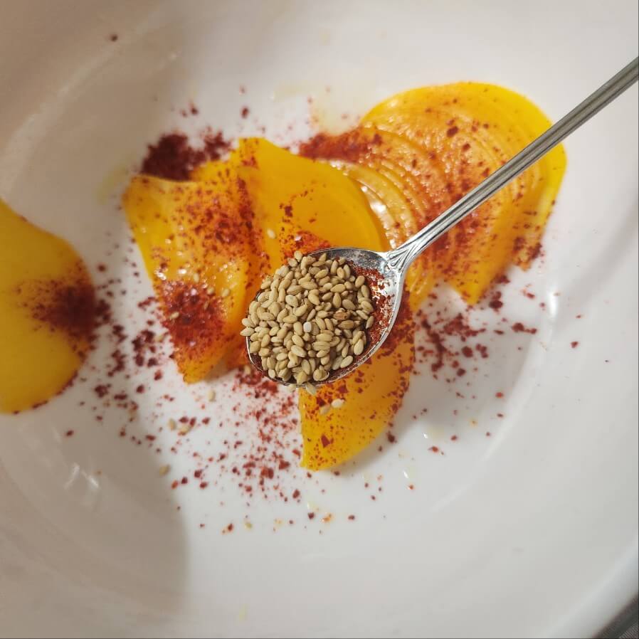 ✅ 취향것 티스푼 기준으로 통깨 1, 고춧가루 0.5 추가해서 넣어주면 된다.