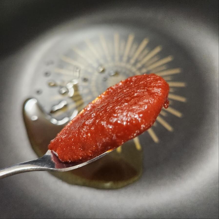 ✅ 숟가락 기준으로 들기름 1 간장 2 고추장 1.5 물엿 1.5를 넣고 중간불로 끓여주면 된다.