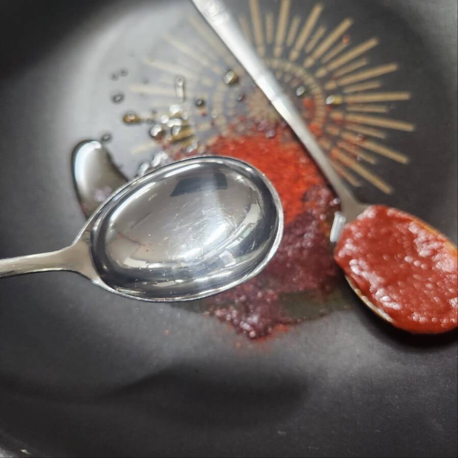- 숟가락 기준으로 들기름 1, 간장 2, 고추장 1.5, 물엿 1.5, 참기름 1