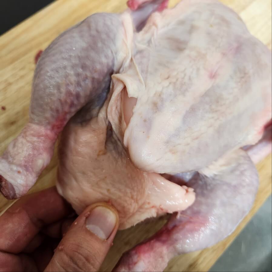 ✅두 번째 사진처럼 닭의 관절을 눌러서 닭을 펴주면 된다. 1번부터 4번까지 따라서 눌러주면 된다.