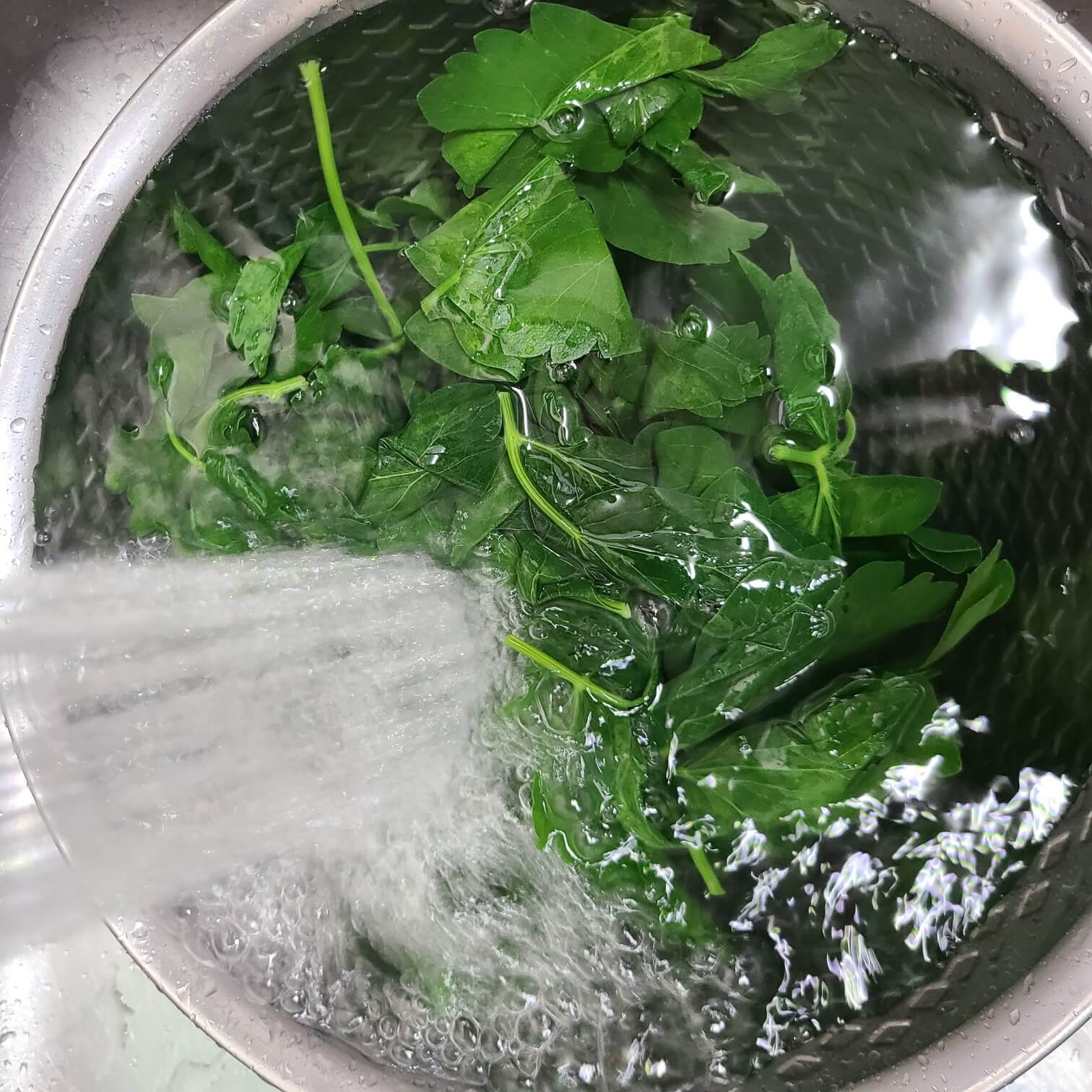 3. 방풍나물은 데치고 나서 찬물에 헹궈 준 다음 수분을 꼭 짠 다음에 양념장을 만들 준비를 하면 된다.