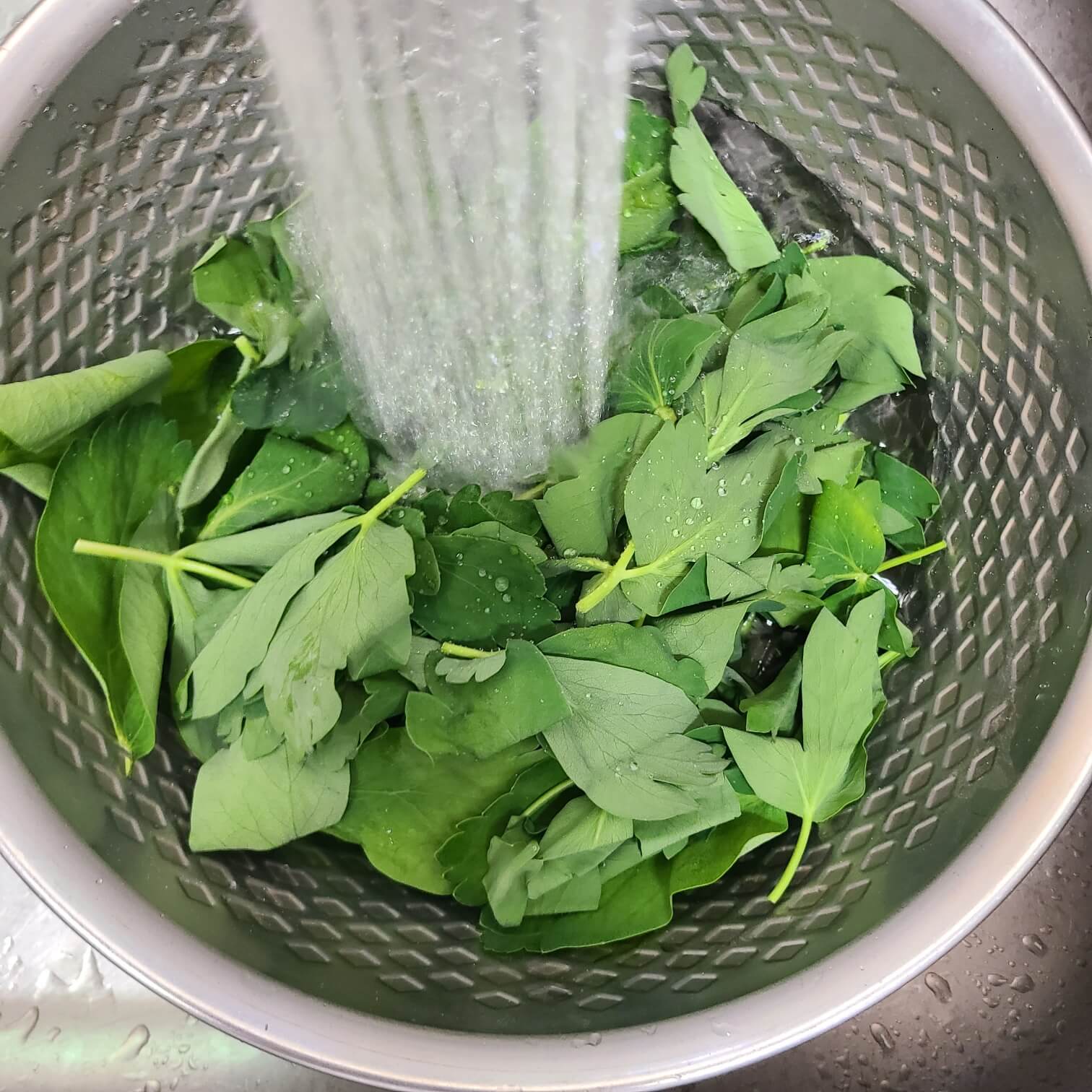 ✅방풍 나물의 줄기는 억세기 때문에 줄기 끝 부분을 잘라주고, 시든 잎, 검정 잎, 누런 잎 등을 제거하고 찬물로 2번 ~ 3번정도 헹궈주면 좋다.