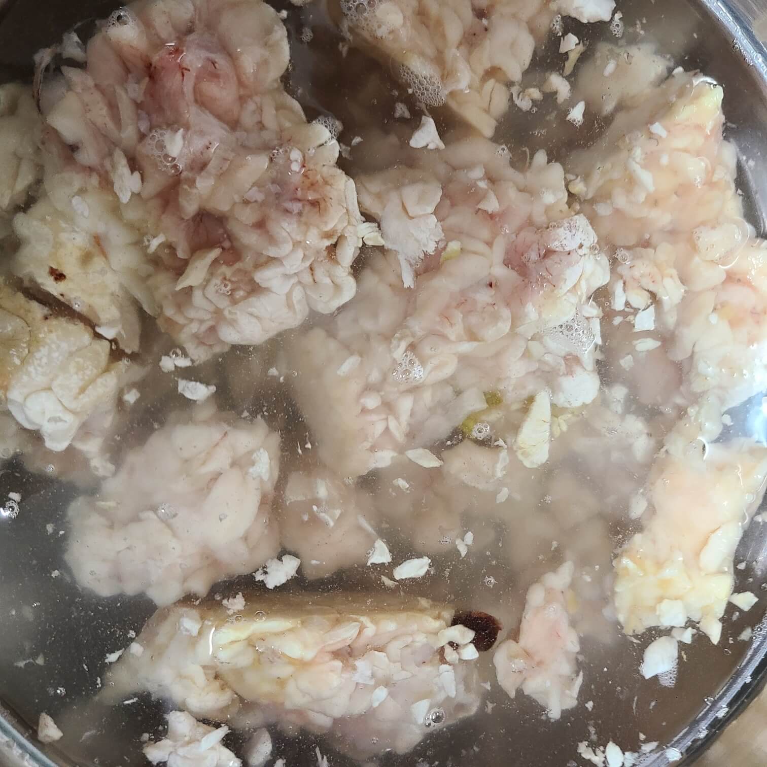 ✅ 물에 담그기 30분, 곤이나 알에 붙어 있는 검정색 이물질을 잡아서 제거해 주면 된다.
