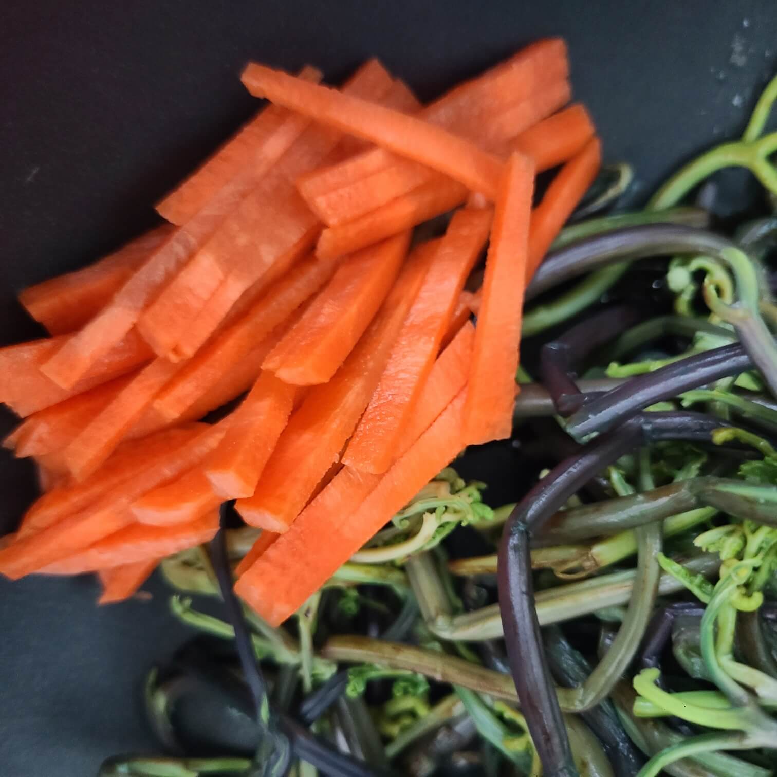 - 생고사리 350g ➡️ 삶은 고사리 291g, 다진마늘 12g, 양파 52g, 당근 25g