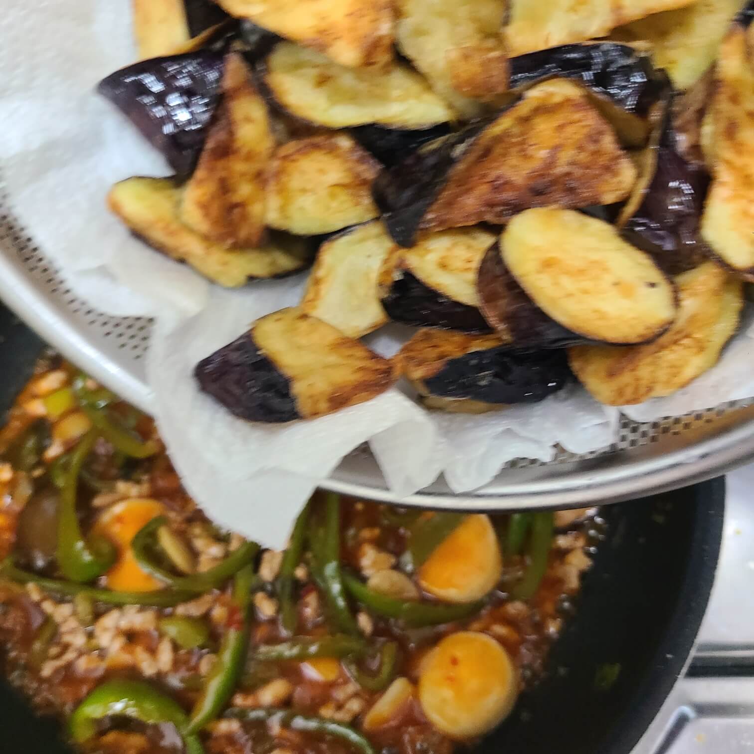 가지의 특유의향과 물컹거리는 식감 때문에 편식하는 사람들이 많이 있는 편입니다. 하지만 가지를 튀기면 식감과 향과 풍미를 올릴 수 있어서 더욱 맛있는 요리가 되는 것 같습니다. 이처럼 반