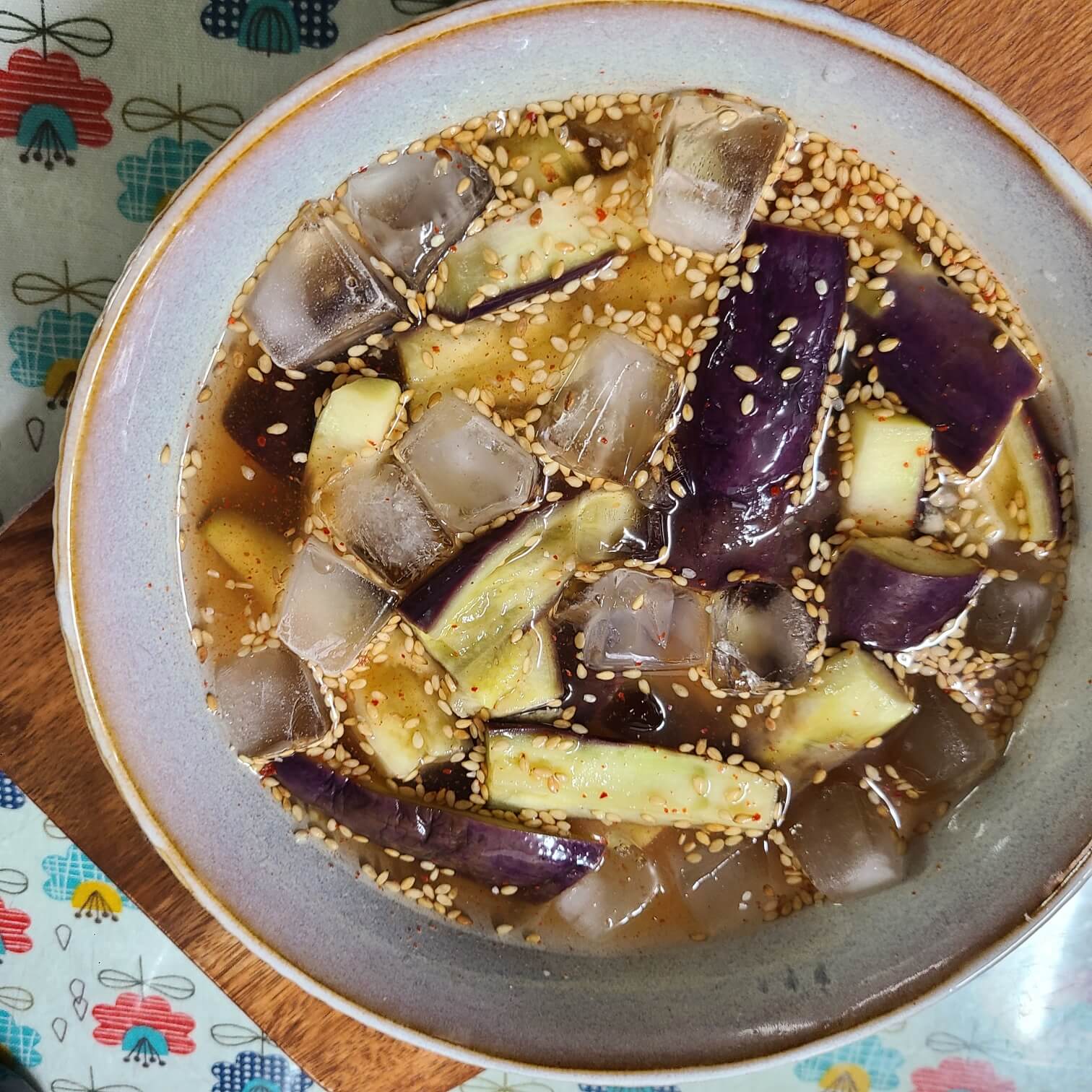 ✅잘 쪄진 가지는 잘 식혀 주고, 시간이 없으면 냉국에 바로 넣고, 얼음 넣어서 드시면 된다.
