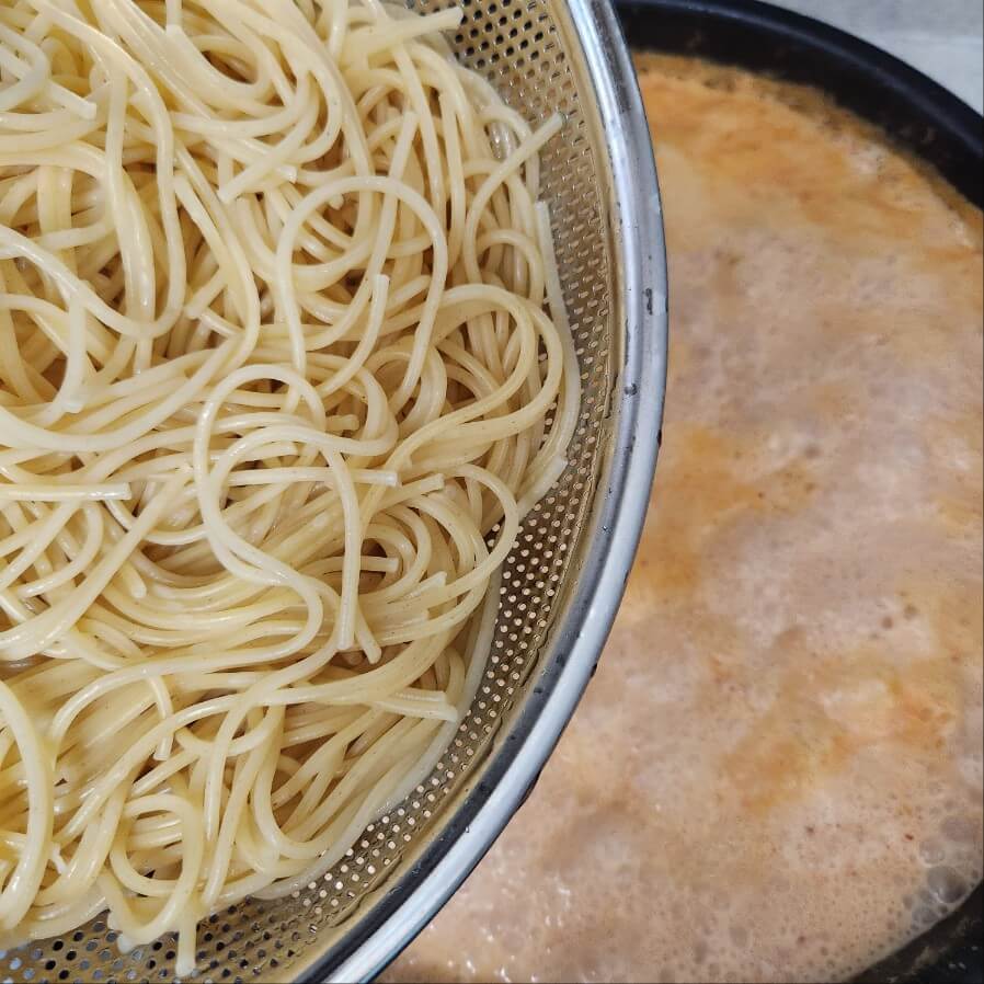8. 마지막에 간은 스파게티 면을 삶고 남은 면수로 간을 해주면 된다.