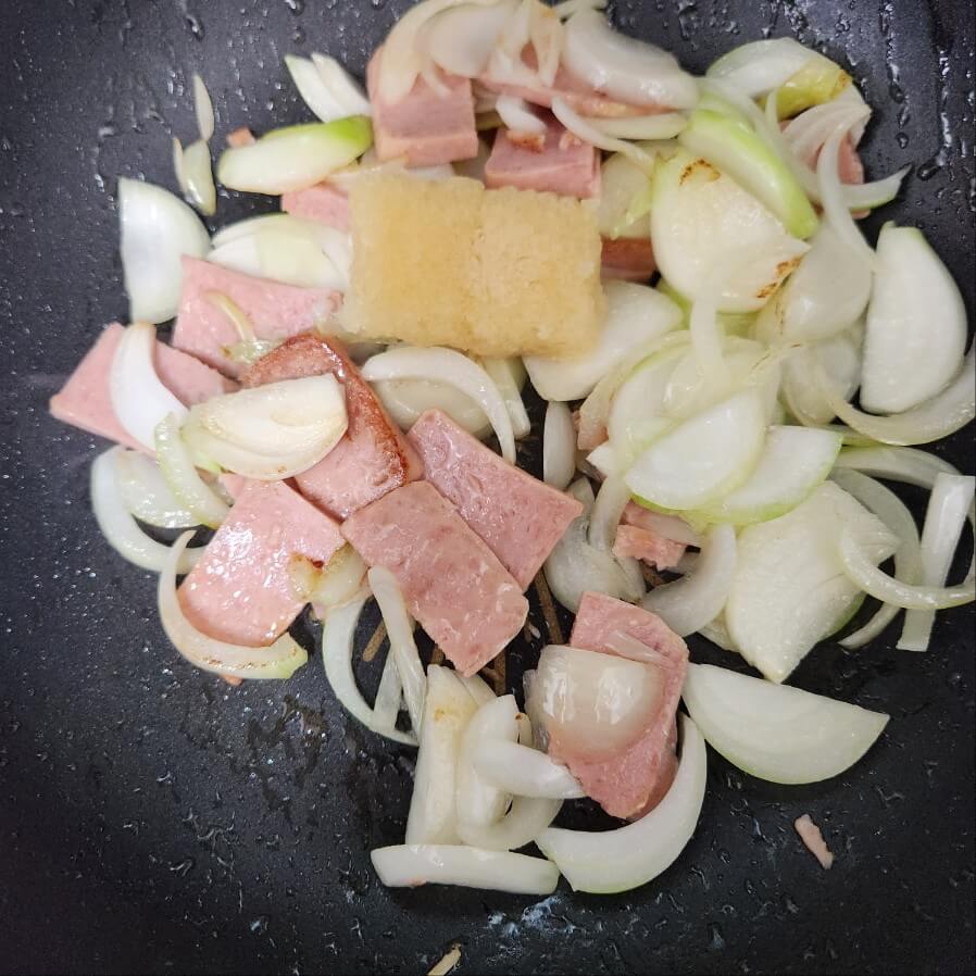 1. 양파 채썰기, 스팸은 먹기 좋은 크기로 썰어준다.