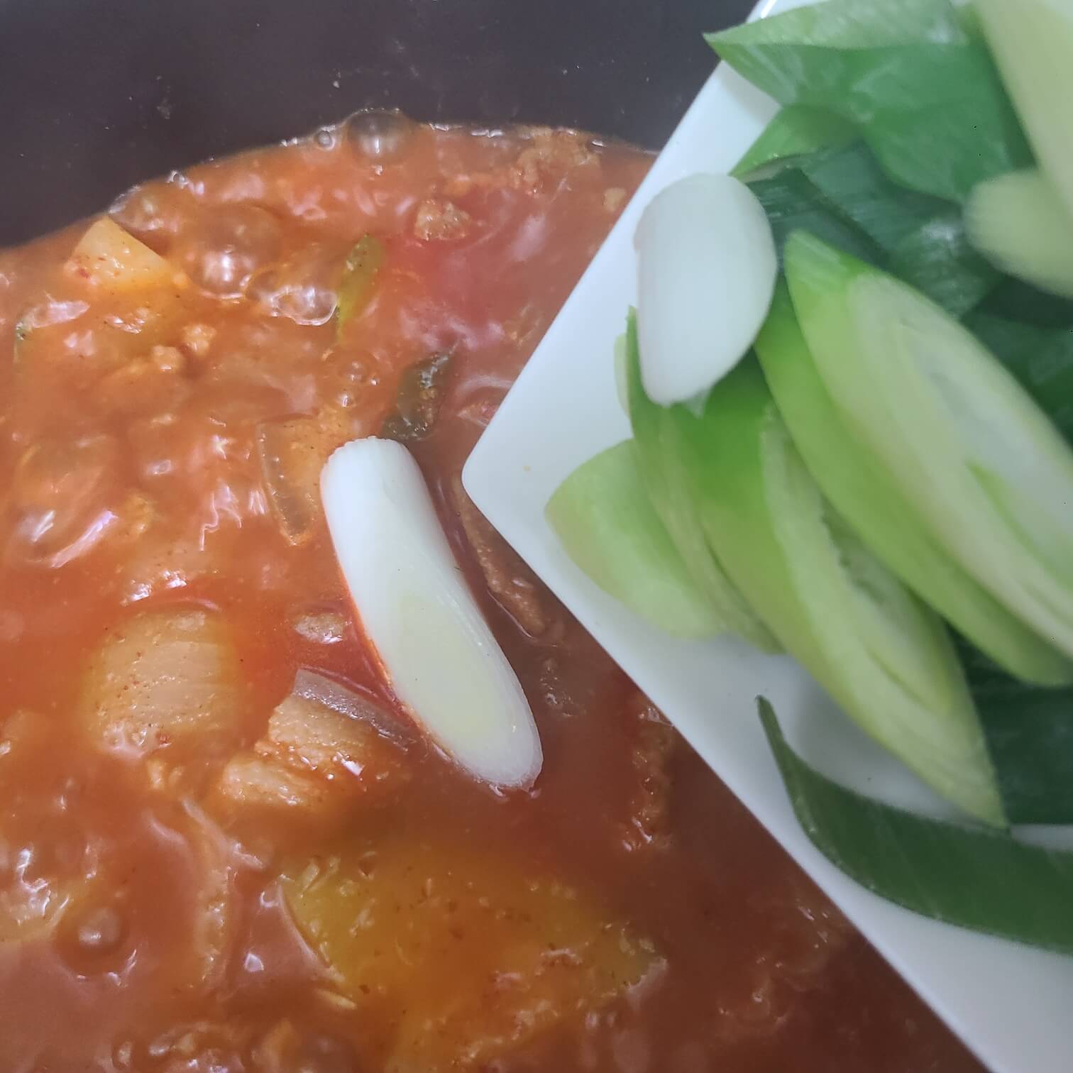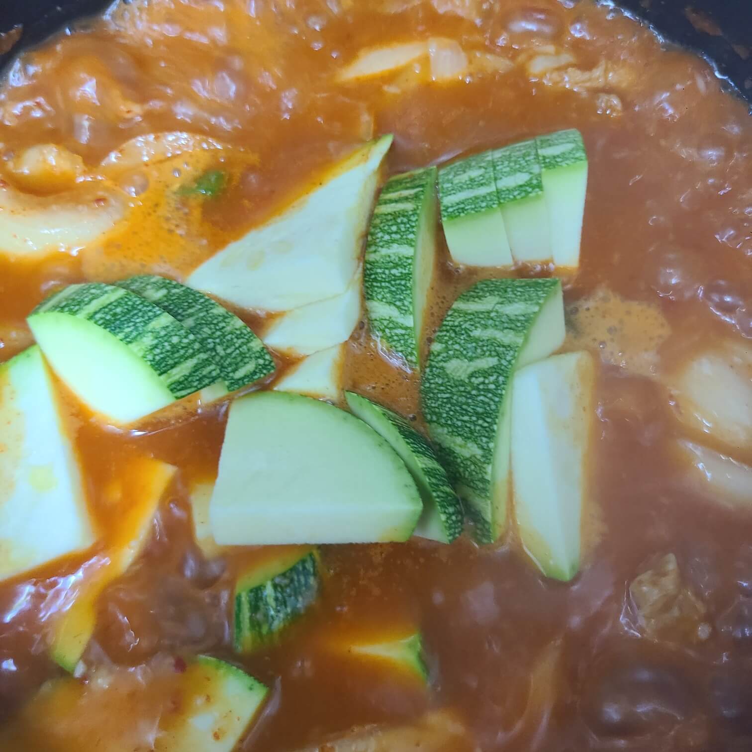 5. 이제 손질 했던 호박, 대파를 넣고 마무리로 간을 해주면 된다.