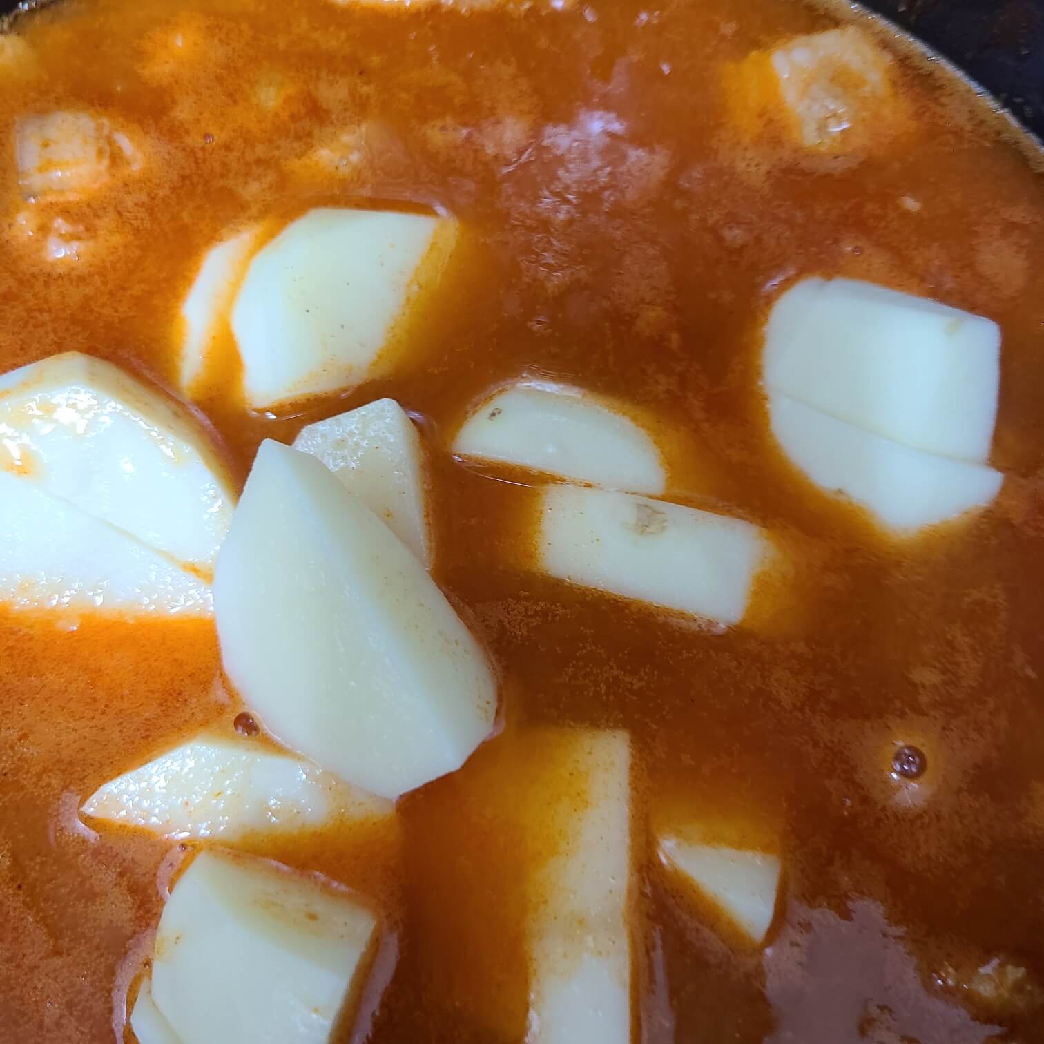 ✅숟가락 기준으로 다진마늘 1.5, 고춧가루 2를 넣고 센불로 8분 ~ 10분간 끓여준다.