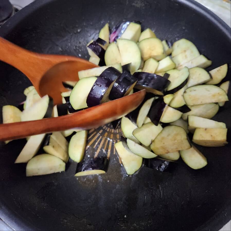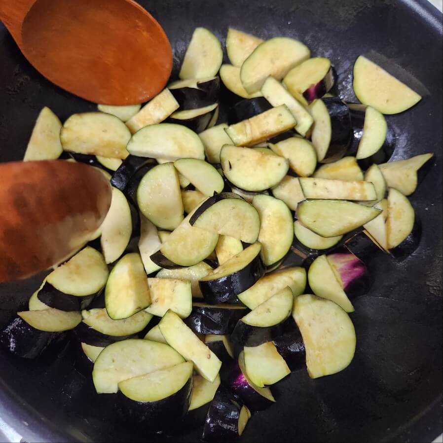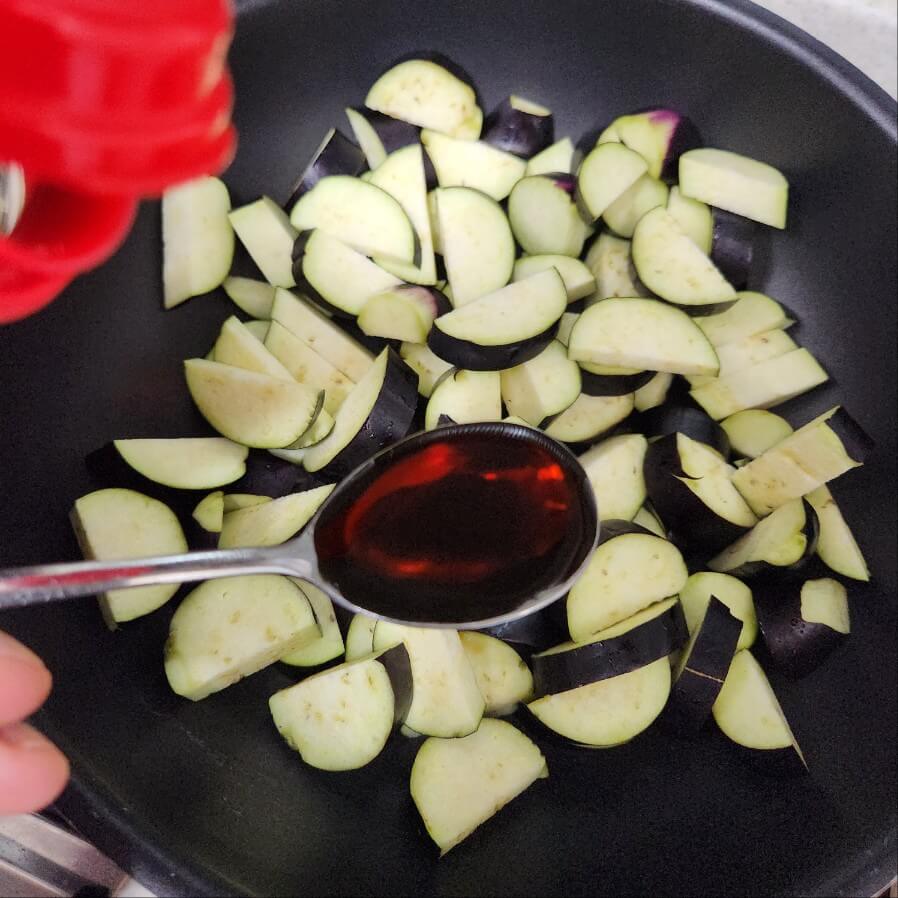2. 가지 솥밥을 하기 위해서 가지를 밑간을 해서 볶아주면 된다.
