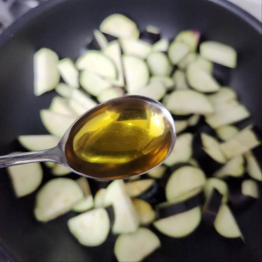 ✅먹기 좋게 가지를 반달썰기로 해준다.