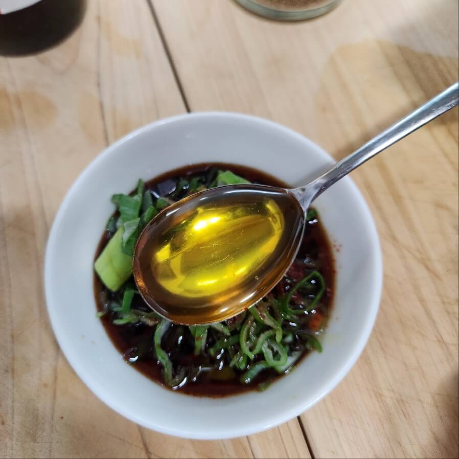- 숟가락 기준으로 간장 8, 들기름 3, 참기름 1, 고춧가루 0.5, 통깨 1