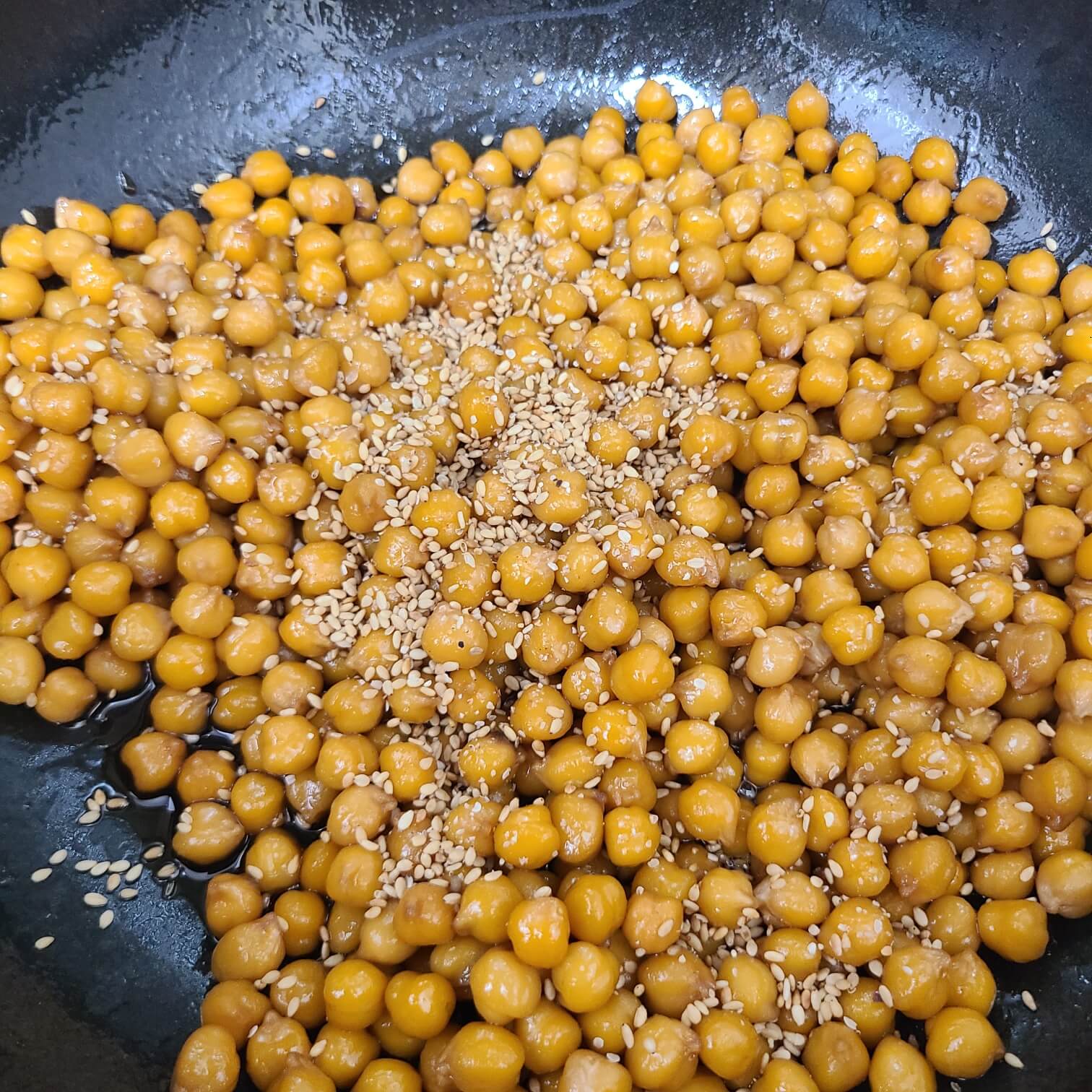 ✅마지막으로 숟가락으로 통깨 1 뿌려주고 마무리 하면 건강에 좋은 병아리콩 조림이 완성이다.