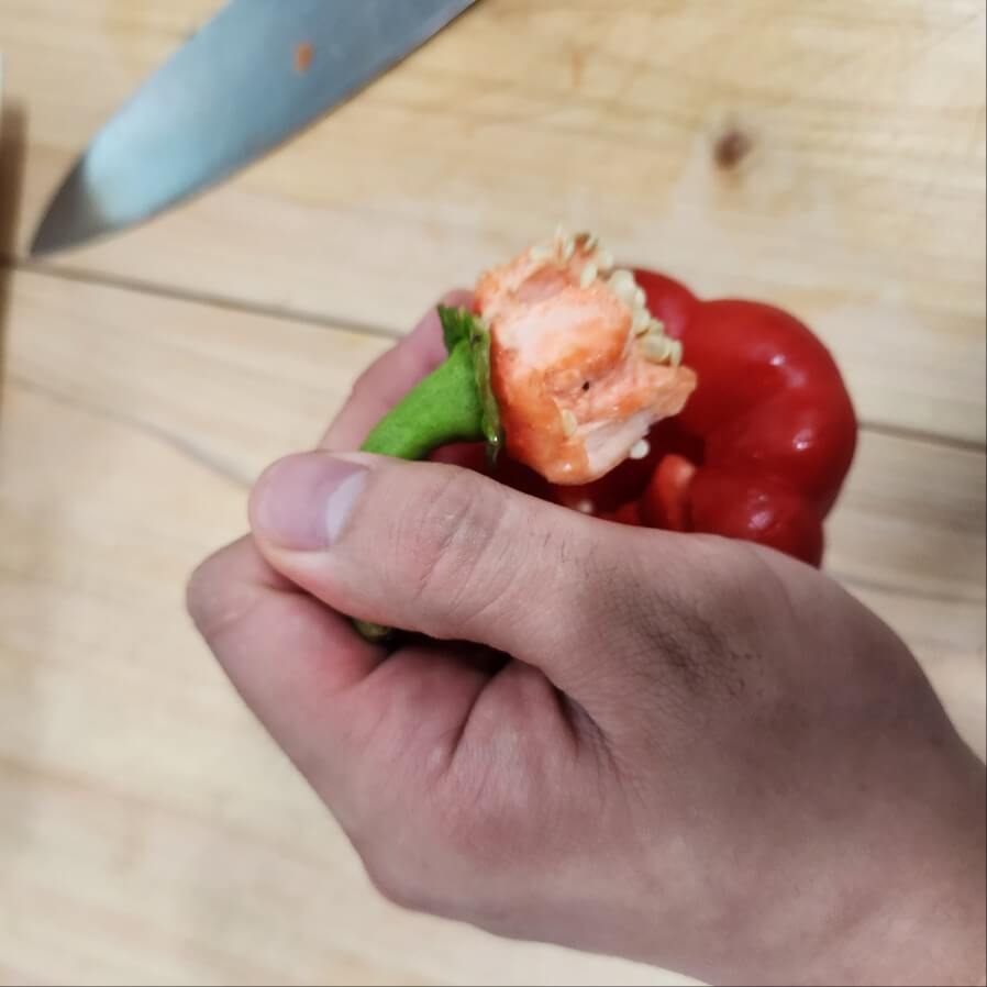 ✅당근은 껍질 벗기고 반달썰기, 파프리카는 꼭지를 꾹 눌렀다가 빼면 꼭지 씨 분리를 더 간단하게 할 수 있다.