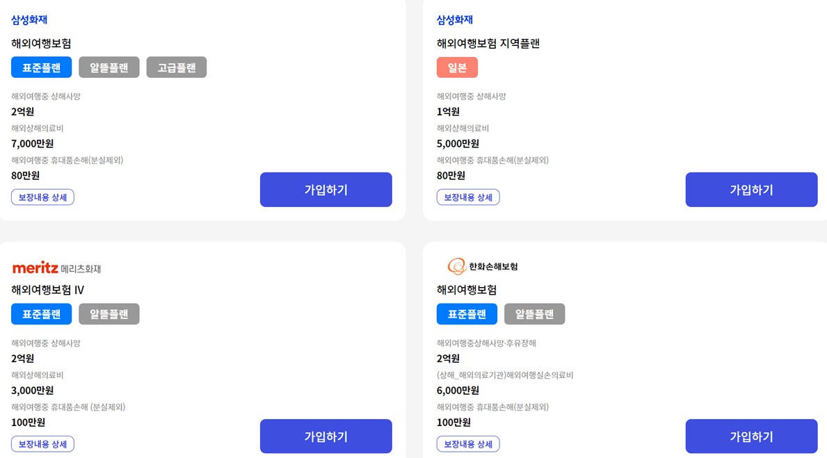📌내가 원하는 시간, 기간, 날짜를 조율해야되므로 가격대가 폭이 넓습니다. 저렴한 알뜰플랜부터, 표준, 고급 플랜까지 되어 있어 나한테 맞는 여행자 보험을 선택해서 가입하시면 됩니다.