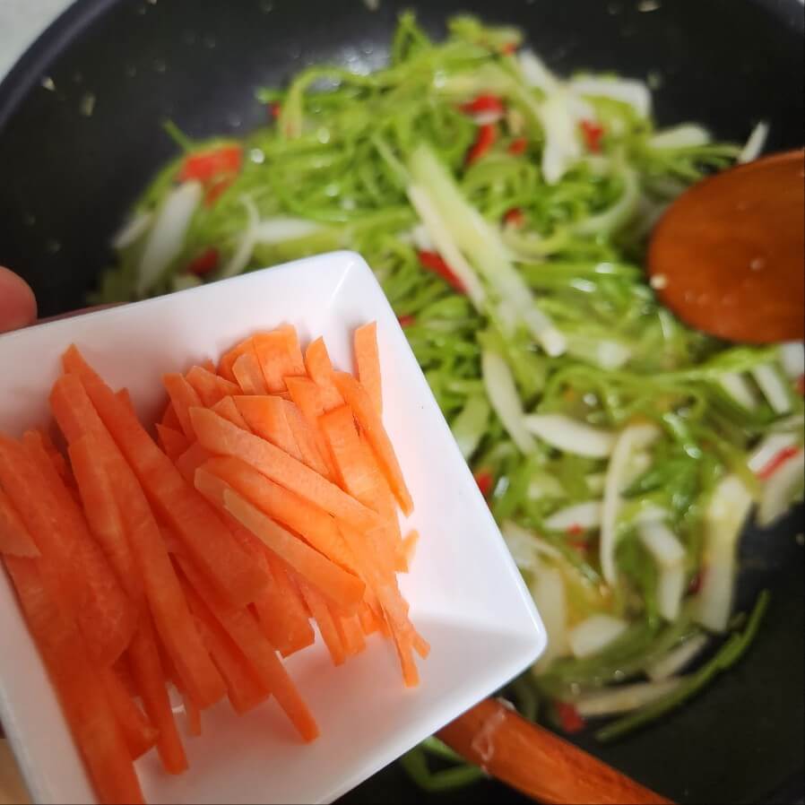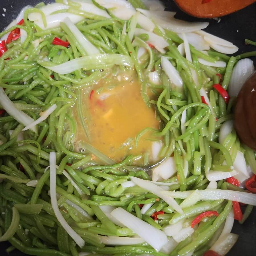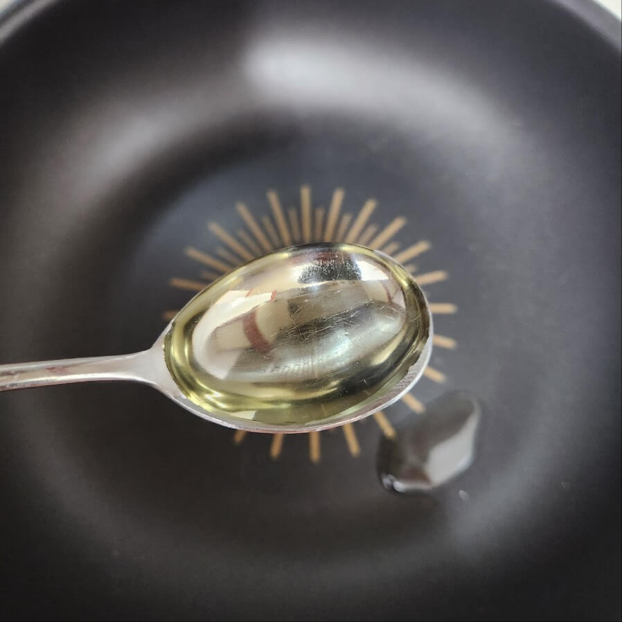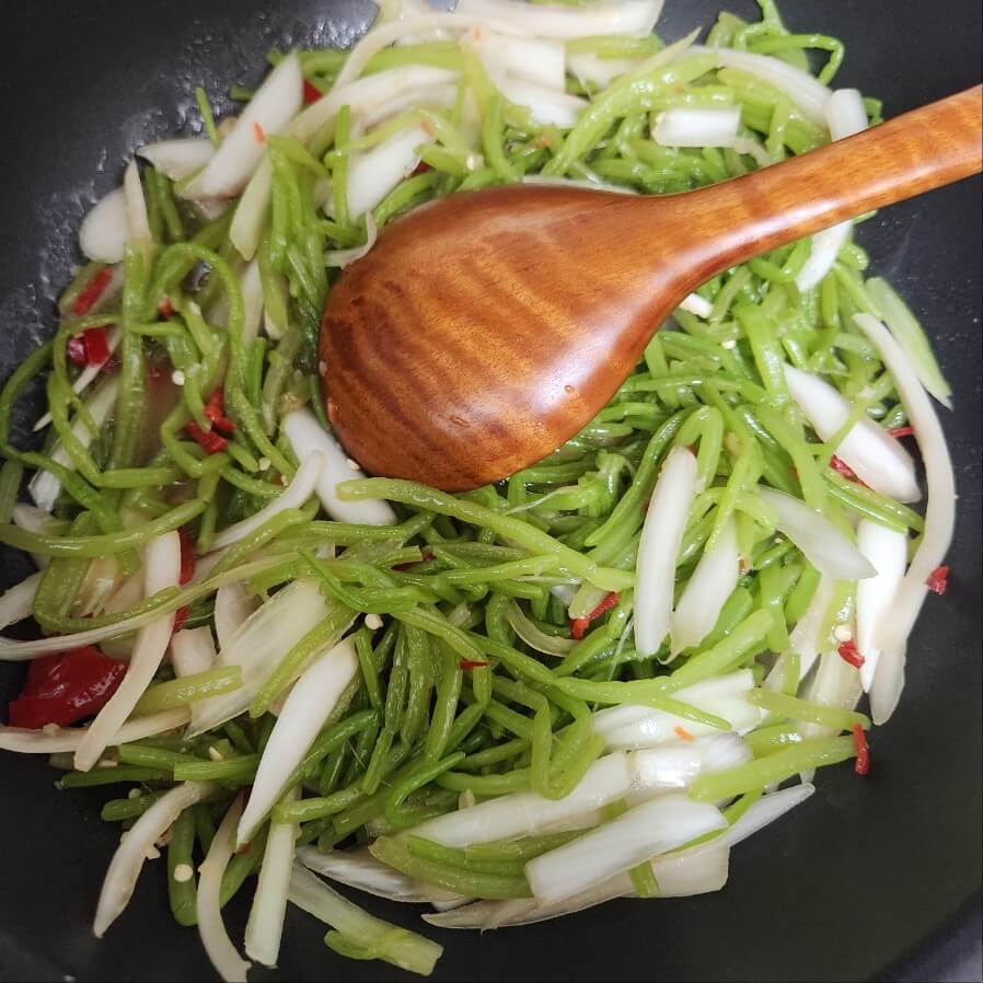 3. 팬에 숟가락 기준으로 식용류 1을 넣고 고구마 줄기를 넣고 센불로 볶아주면 된다.