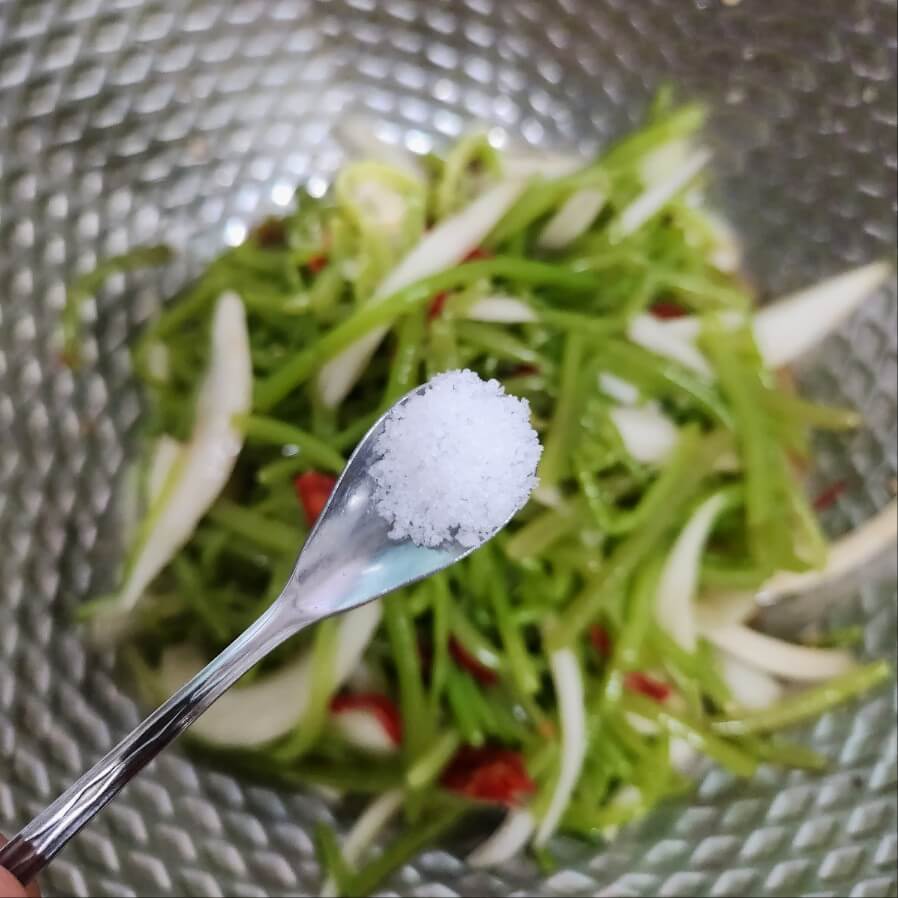 5. 이때 간이 싱거운 분들은 티스푼으로 꽃소금을 추가하는게 가장 깔끔한 들깨 고구마줄기 볶음을 먹을 있다.