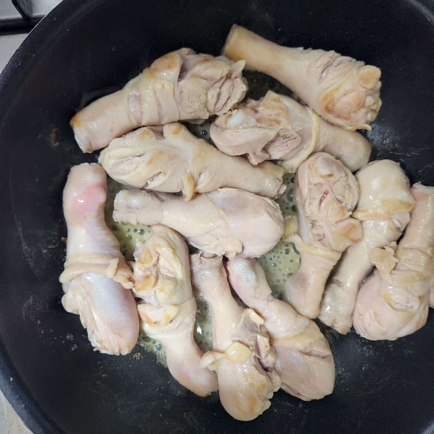 ✅이때 물에 빠진 닭다리에 보면 빨강 핏덩어리가 보이는데 잡내의 원인이니 제거해 주면 된다.