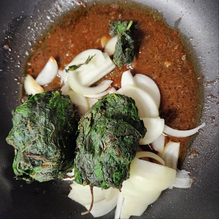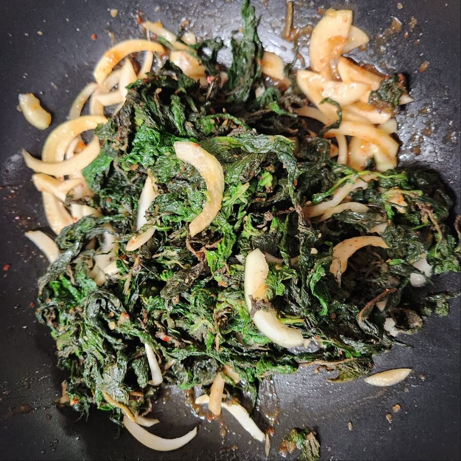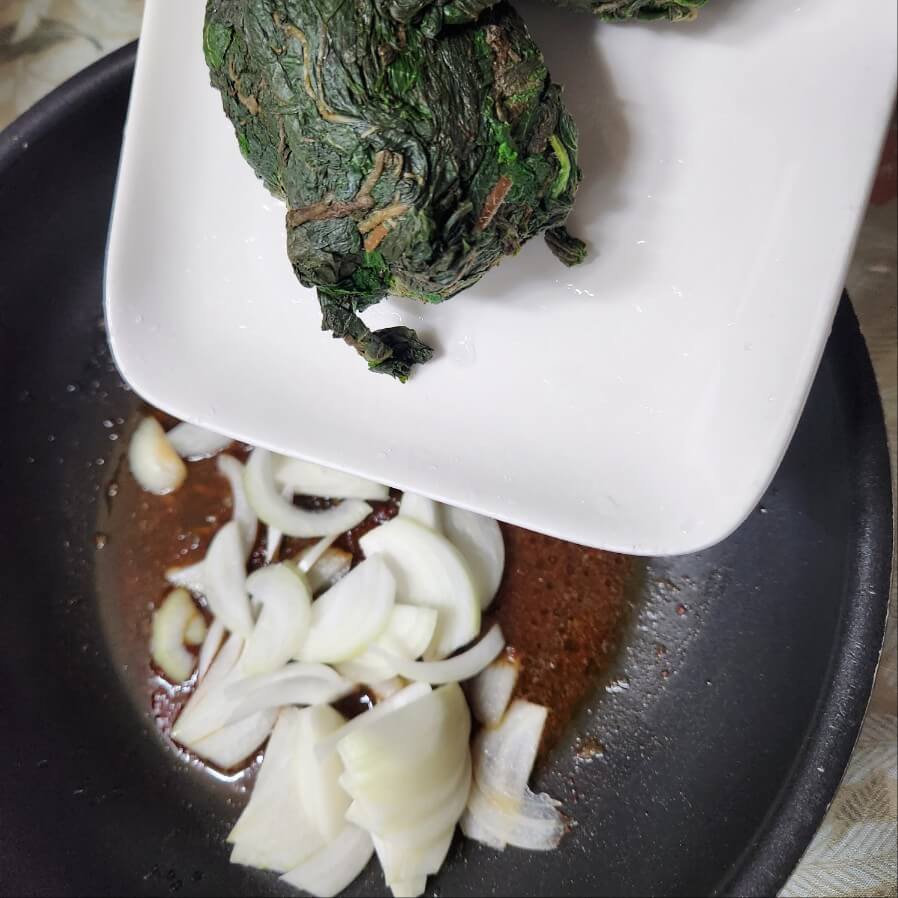 ✅녹은 깻잎은 수분을 꼭 짜서 볶음 요리에 활용하면 된다.
