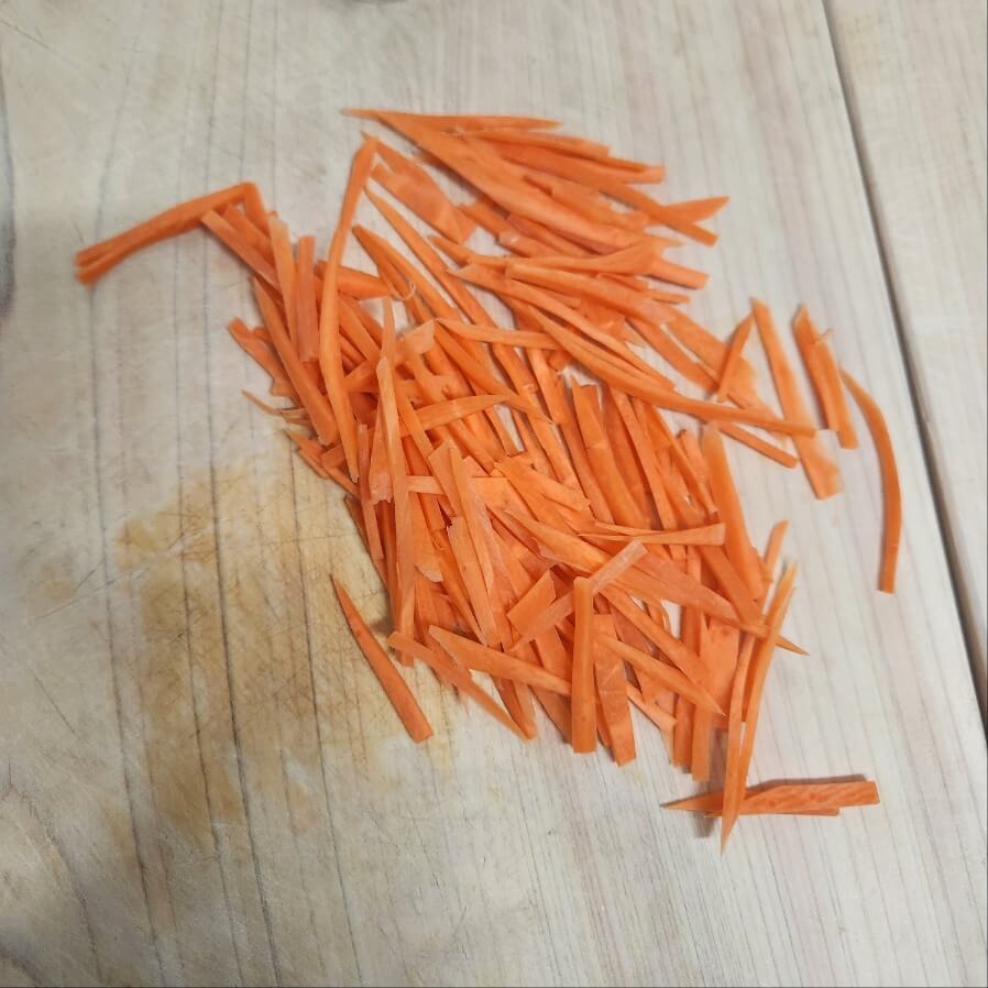 2. 당면은 채반에 바쳐서 물기를 빼주고, 당근은 얇게 채썰어주면 된다.