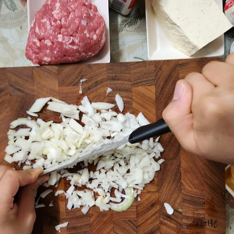 ✅다짐육 반죽에 야채가 들어가기 때문에 모두 다져주면 좋다.