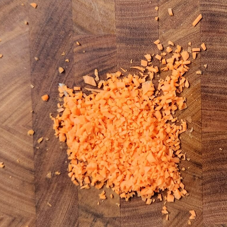 3. 다짐육도 핏기가 있기 때문에 키친타올로 제거하고, 양파, 당근, 청양고추 모두 얇게 다져주면 된다.