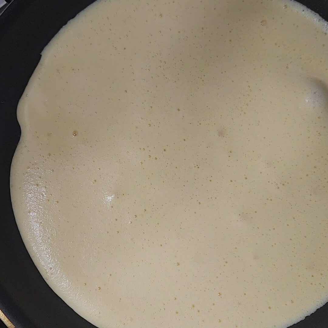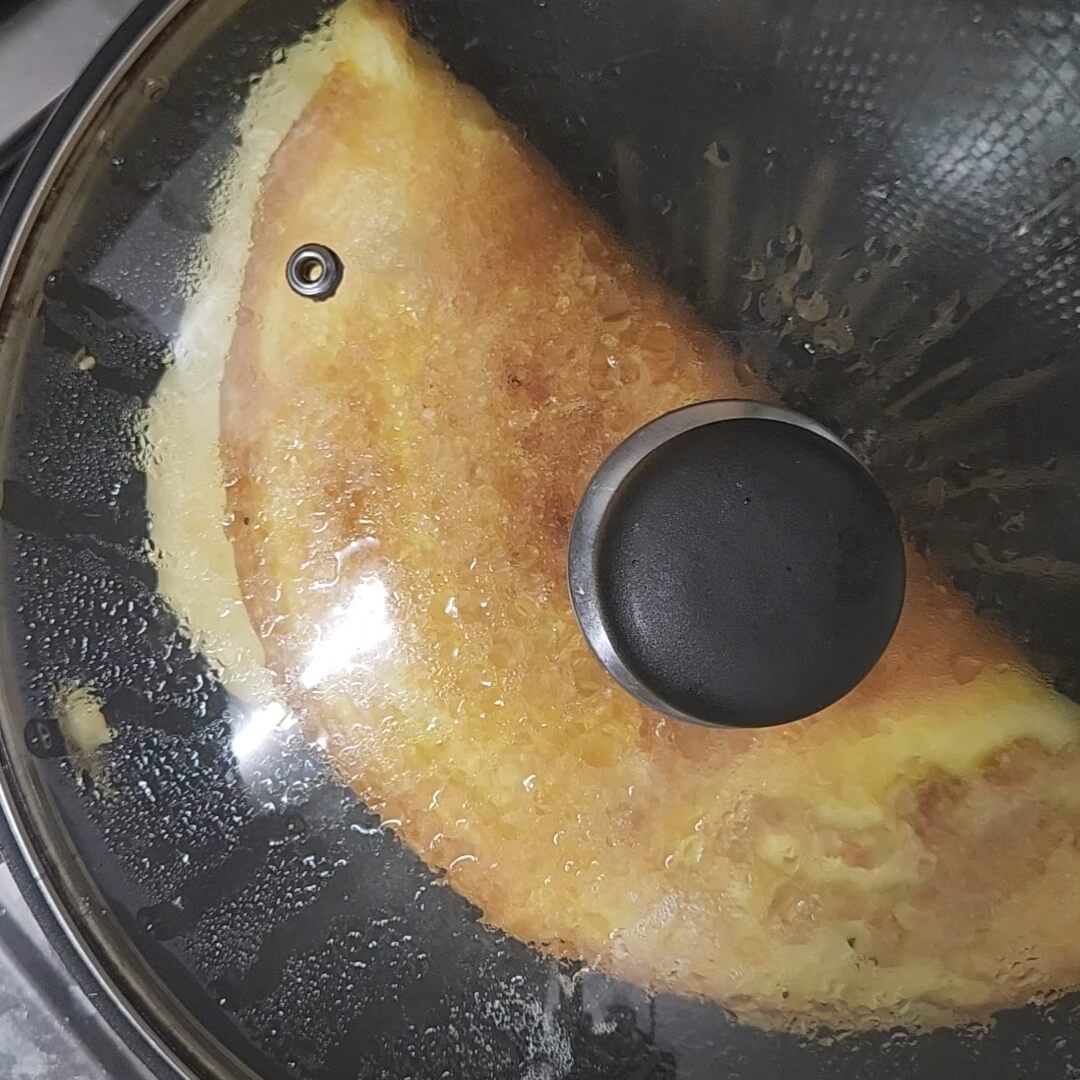 5. 팬에 기름을 넉넉히 부으고 완성된 오물렛 반죽을 넣어주고 뚜껑을 닫아주면 된다.