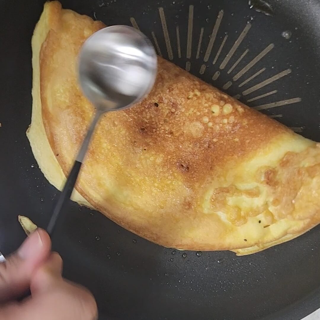 📌마무리로 뚜껑닫고 1분정도 뜸을 드려도되고 바로 먹어도 맛있는 수플레 오물렛을 맛 볼 수 있다.