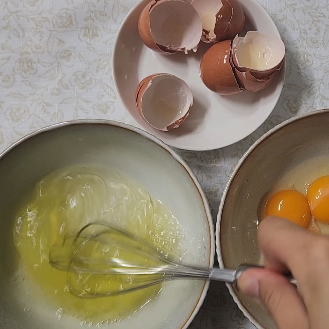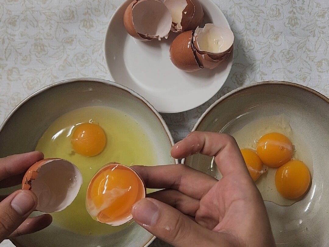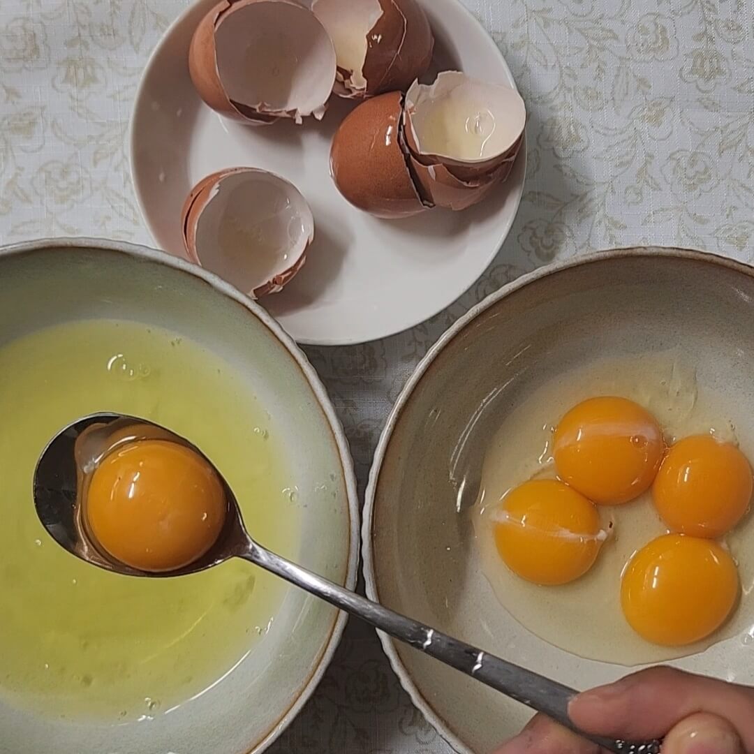📌한쪽에는 노른자, 한쪽에는 흰자만 따로 모아주면 된다.