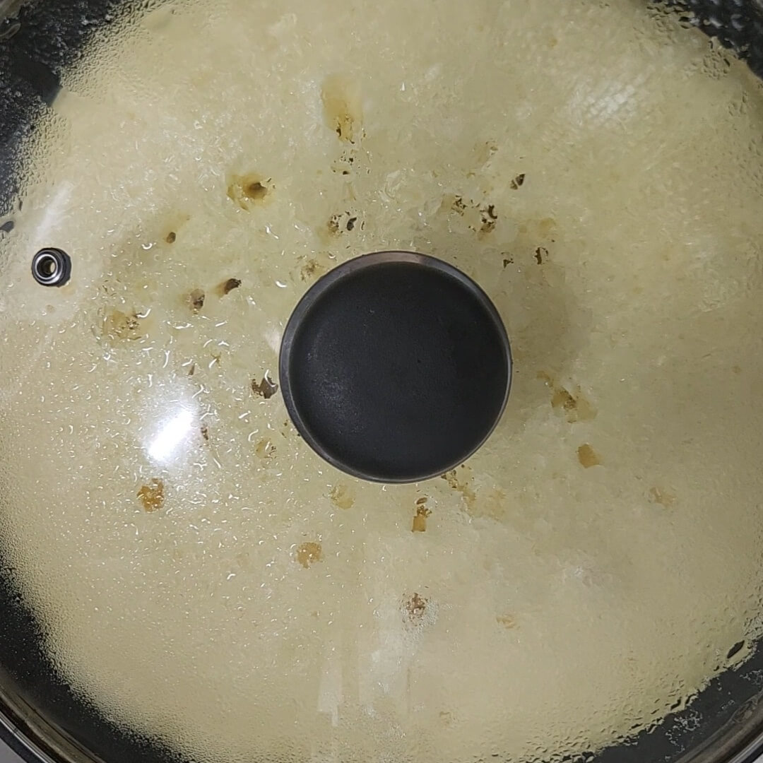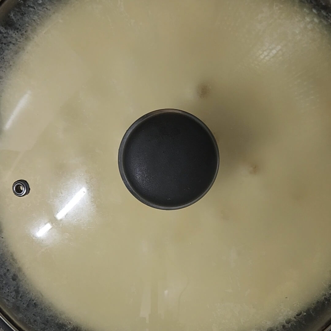 6. 뚜껑 안에 반죽이 기포가 뽕뽕 나오기 시작하면 반죽을 뒤집고 마무리로 익혀주면 된다.