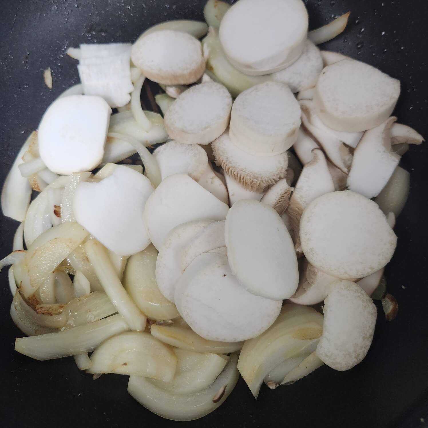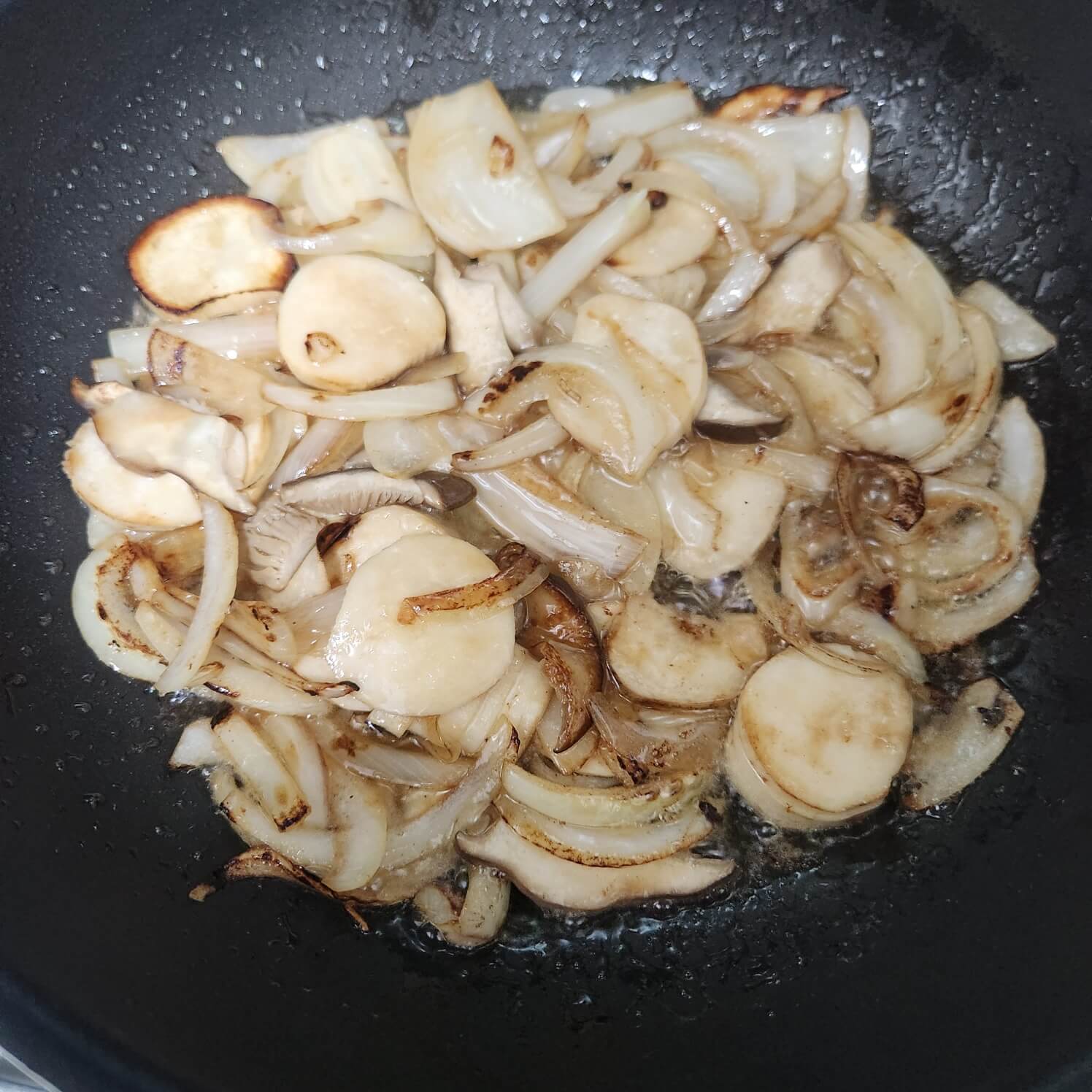✅버섯이 갈색으로 변하면 다음 레시피로 넘어가면 된다.