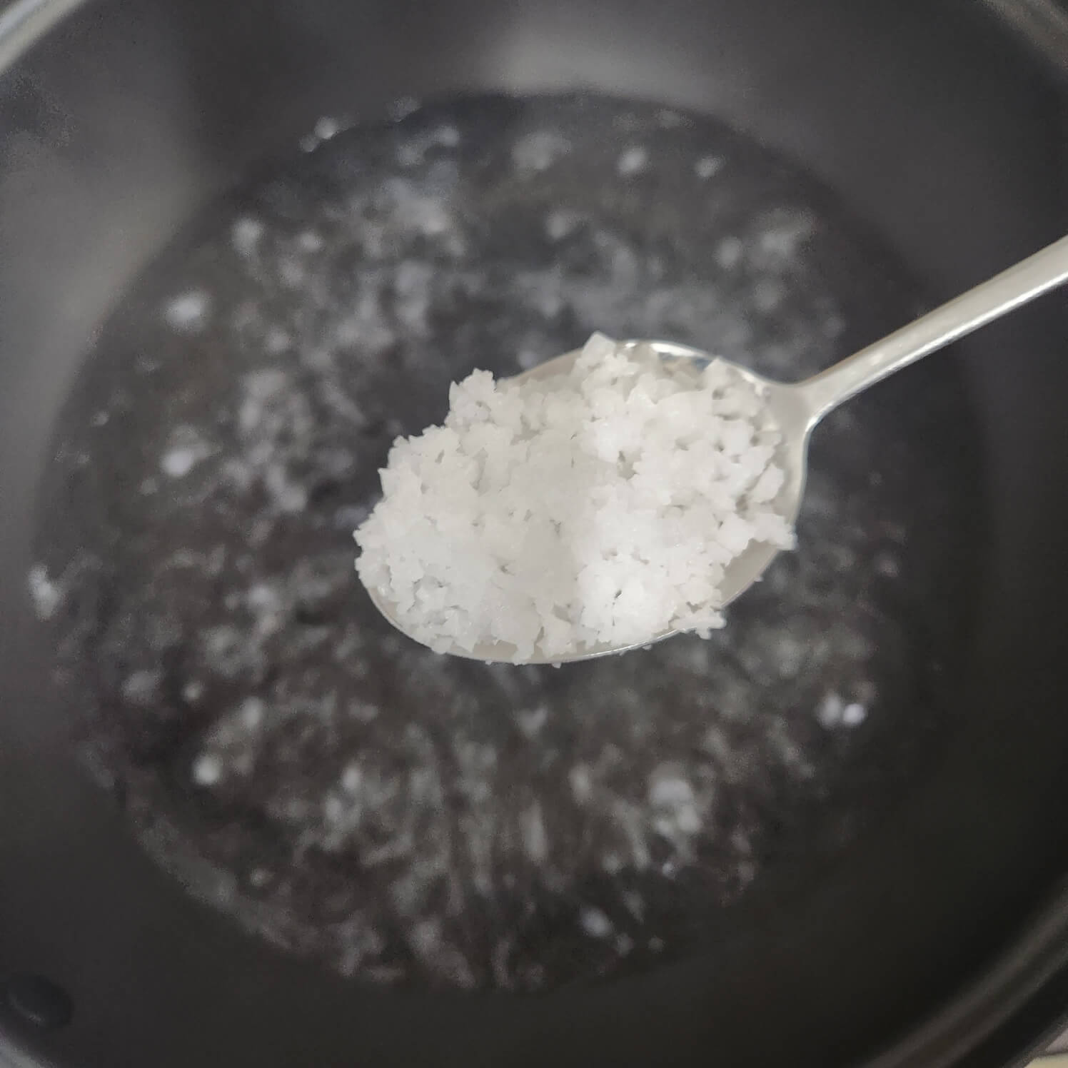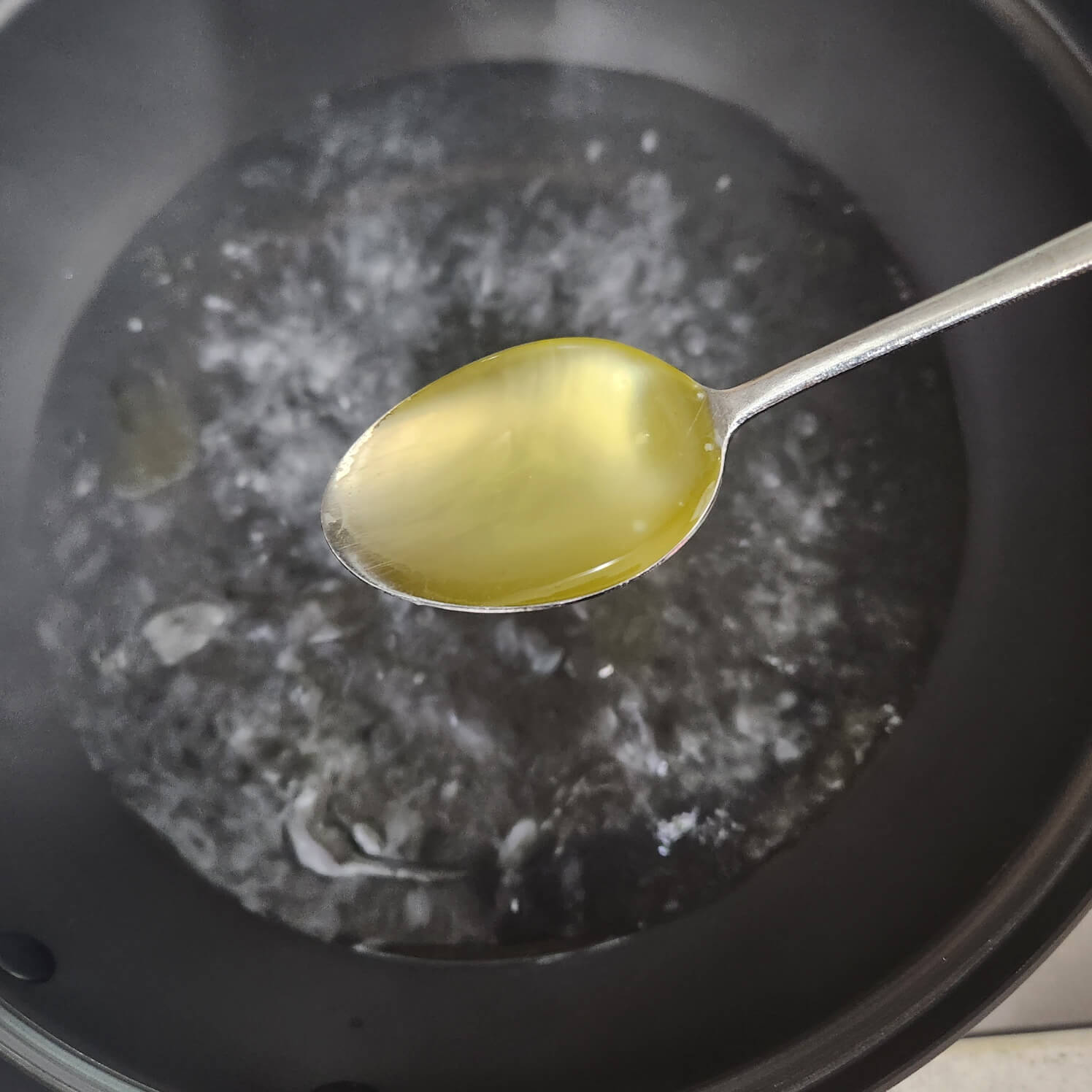 2. 파스타를 삶을 때 숟가락 기준으로 천일염 1, 올리브유 1, 1인분 파스타를 넣거나 양것 넣어주면 된다.