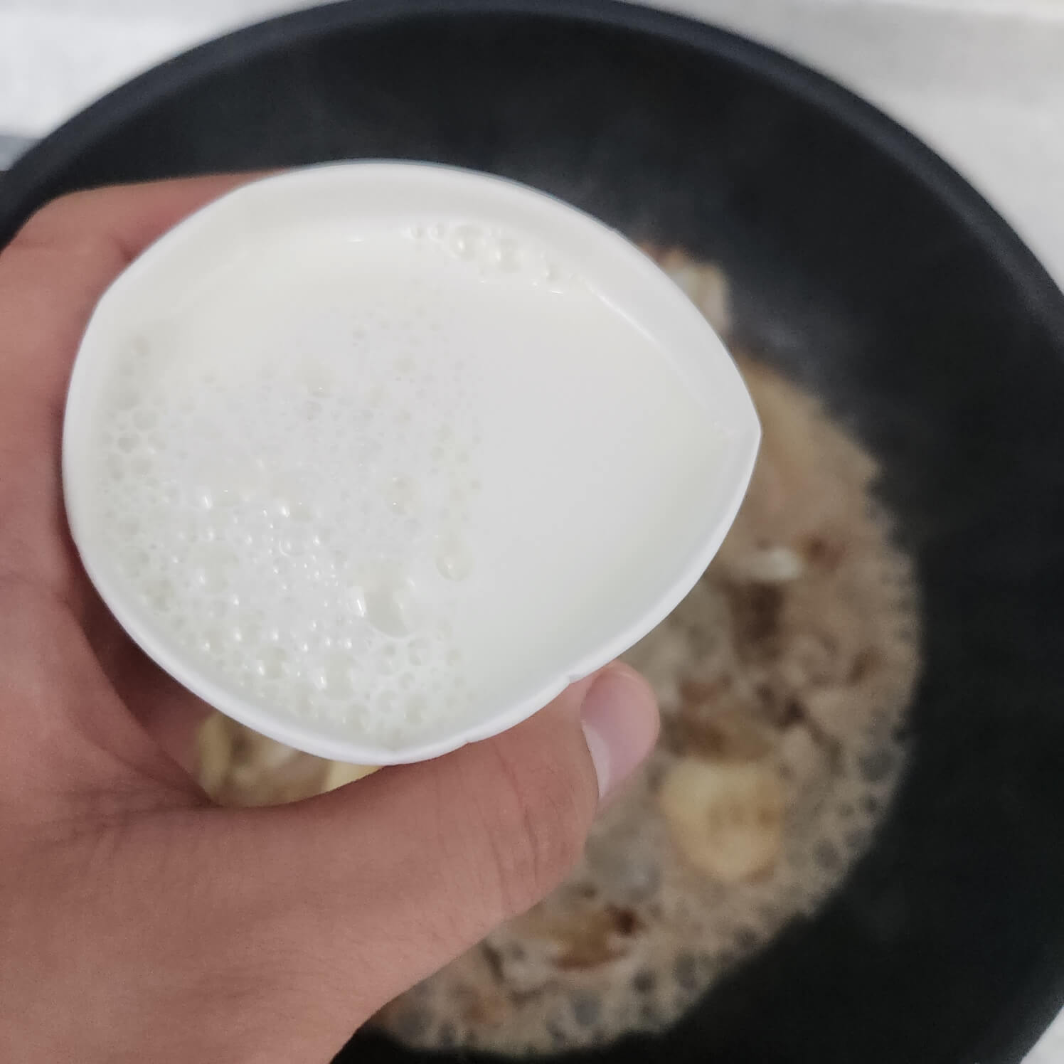 ✅이때 종이컵 기준으로 우유 1, 생크림 0.5, 숟가락 기준으로 체다치즈 2 또는 바질 페스토 1을 넣고 끓여주면 된다.