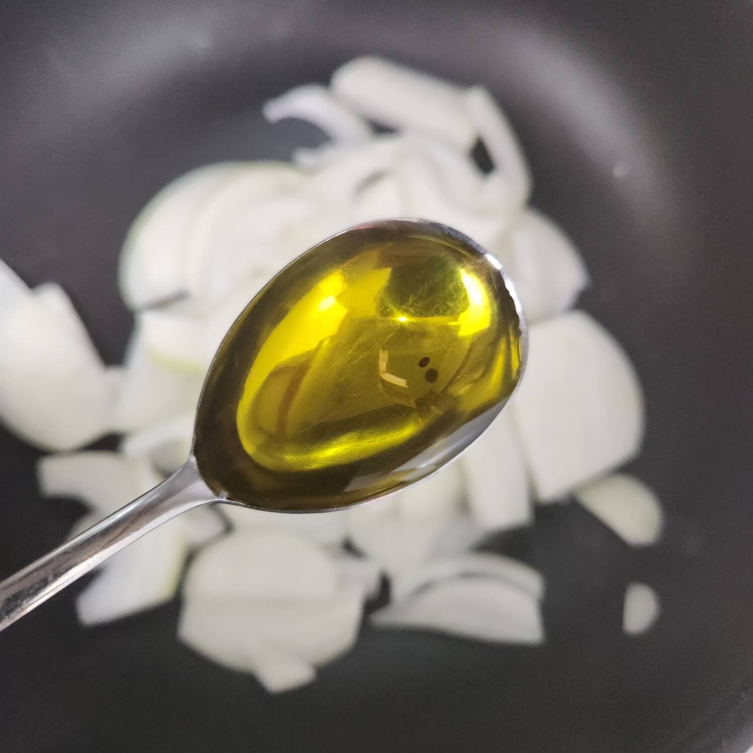 ✅숟가락 기준으로 올리브유 1을 넣고 중간불로 양파가 갈색이 되도록 볶은 뒤 새송이 버섯을 넣어주면 된다.
