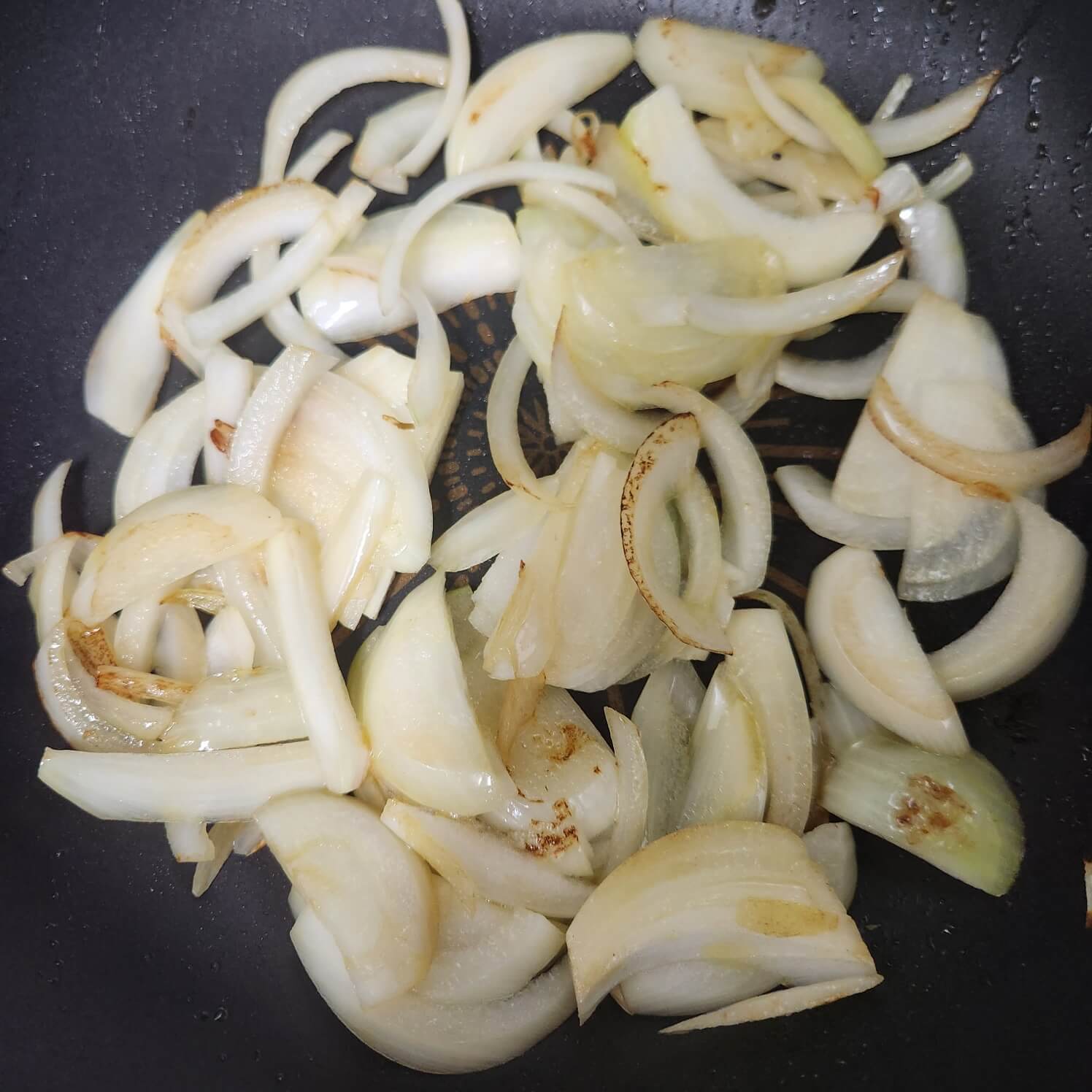 5. 소고기 기름을 넣고 야채를 볶다보면 채소 수분과 소기름이 만나서 보글보글하게 된다.