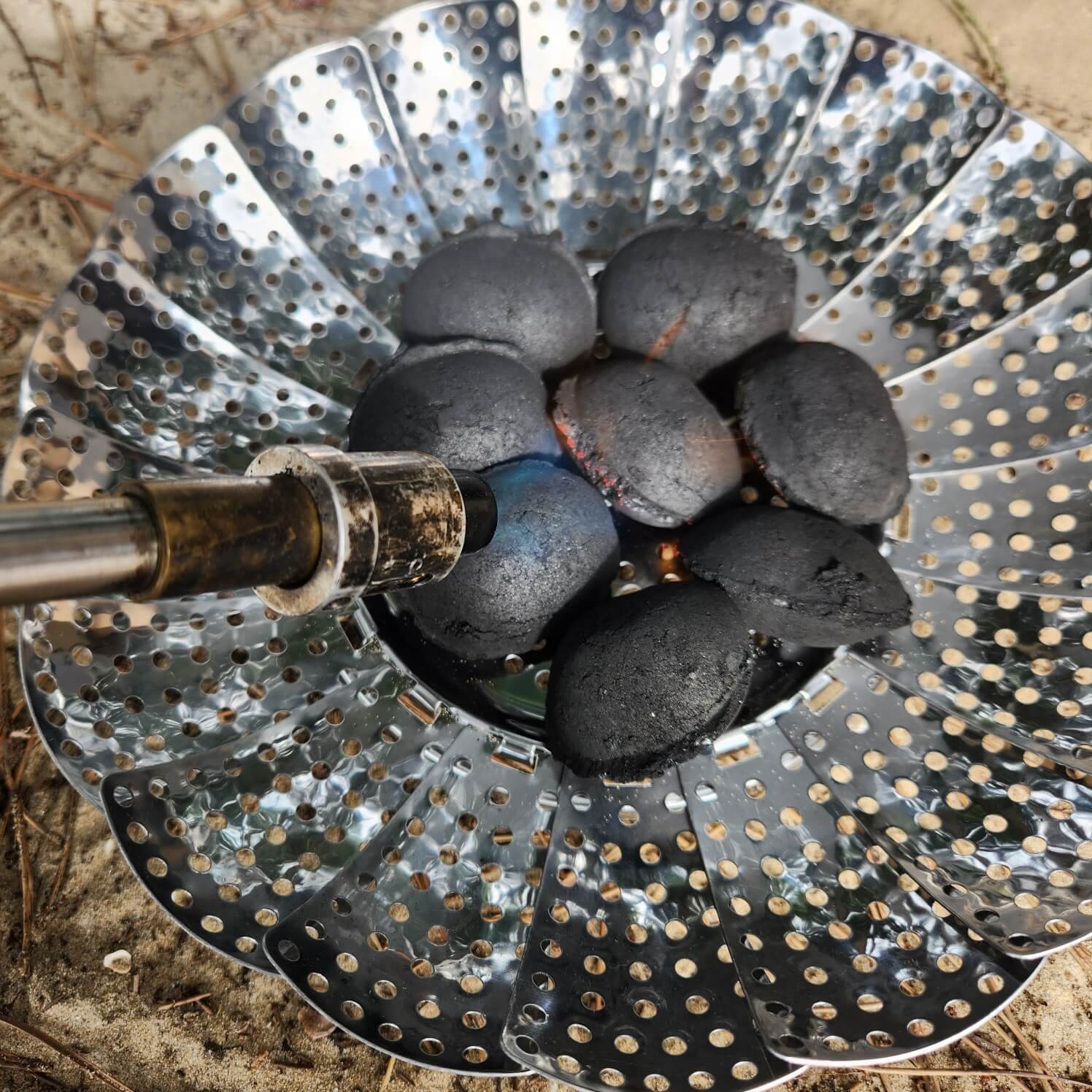 ✅다시 조개탄 8개를 추가로 넣고 바람이 통하는 모래 구멍을 모두 막은 상태로 추가로 2시간 정도 훈연을 해주면 된다.