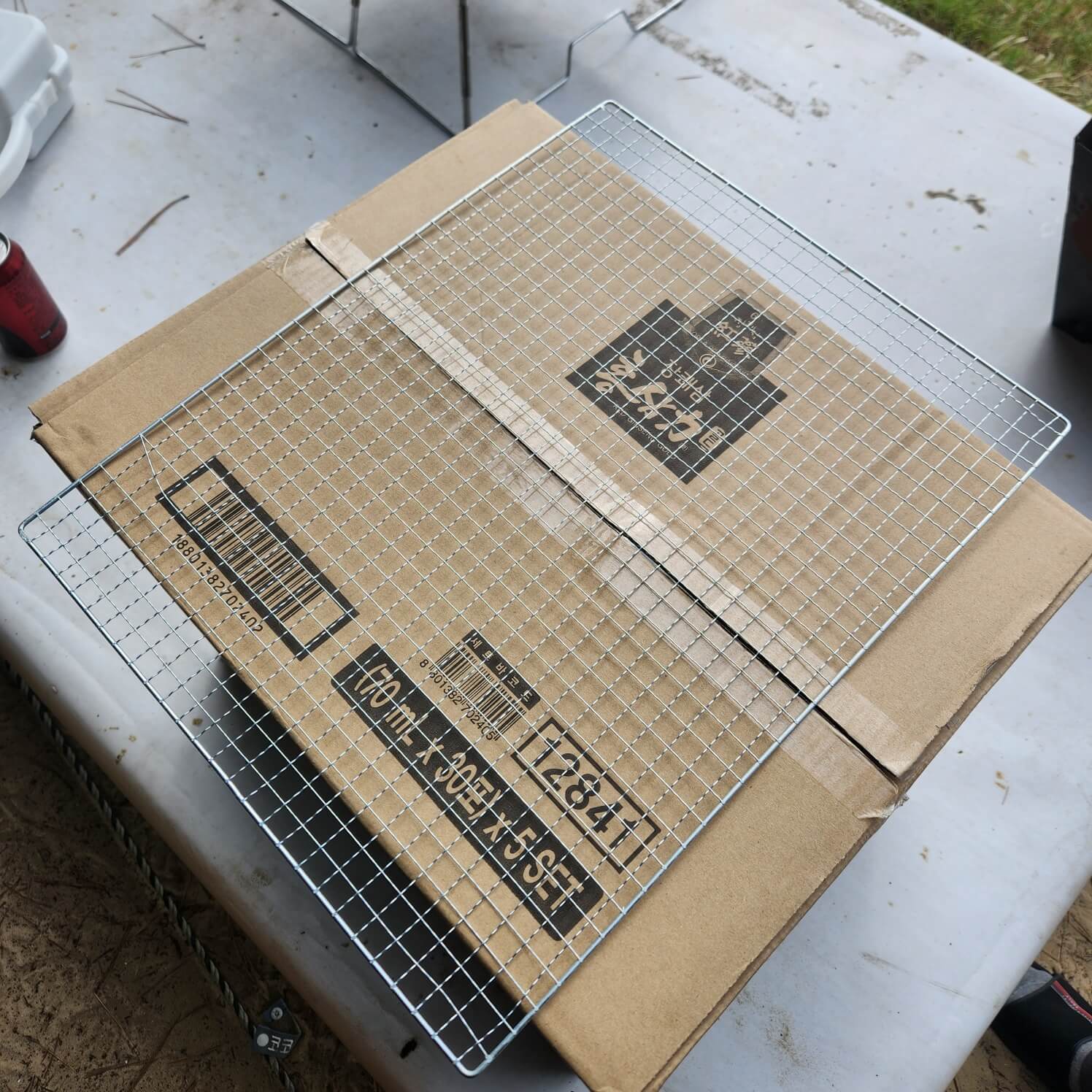 ✅훈제박스는 우리가 사용하는 불판이 들어가도록 양끝을 칼로 잘라주고 그 사이로 불판은 넣어주면 된다.