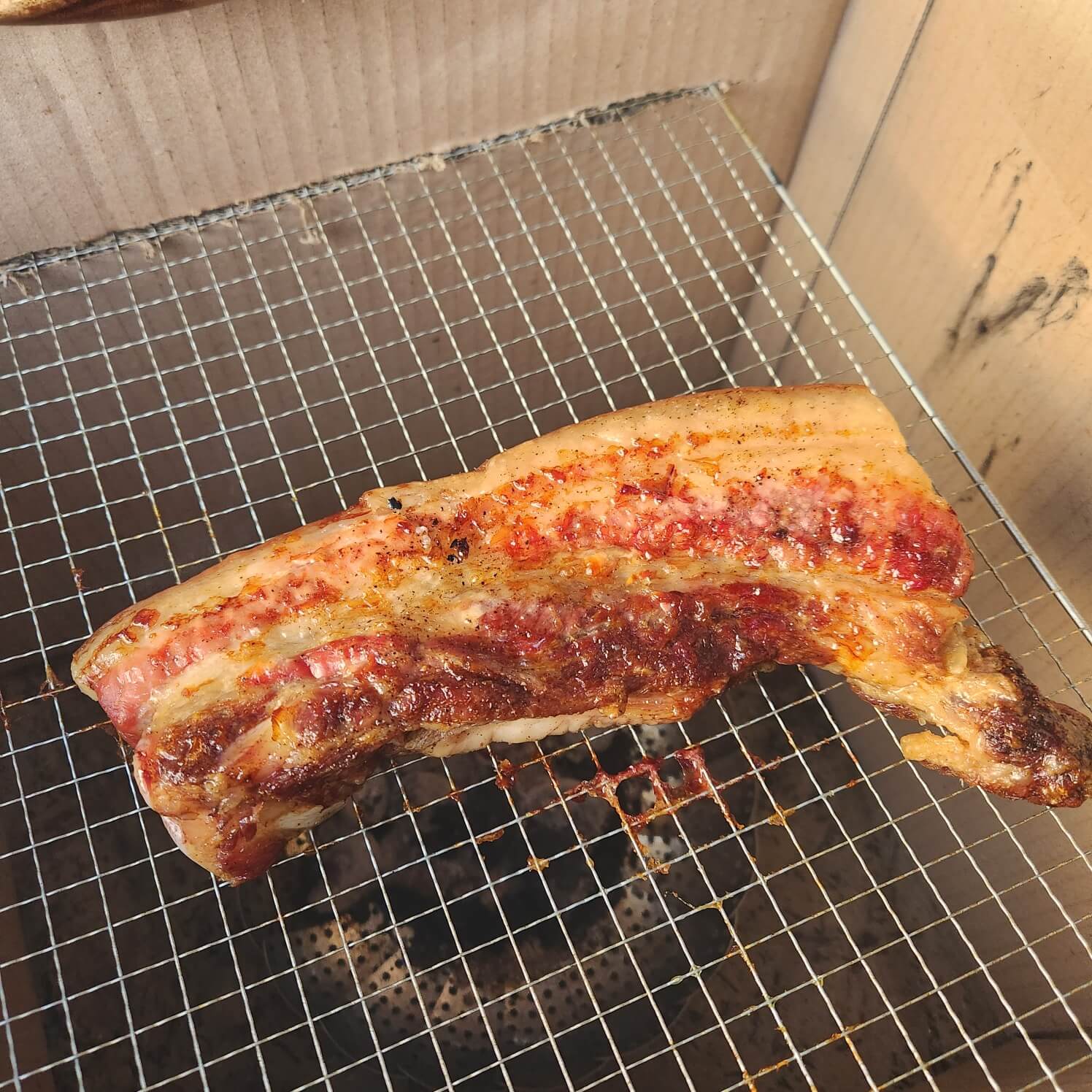 5. 약 4시간 정도 훈연박스 안에서 익혀준 삼겹살은 야들야들 하고 맛있게 잘 익었다.
