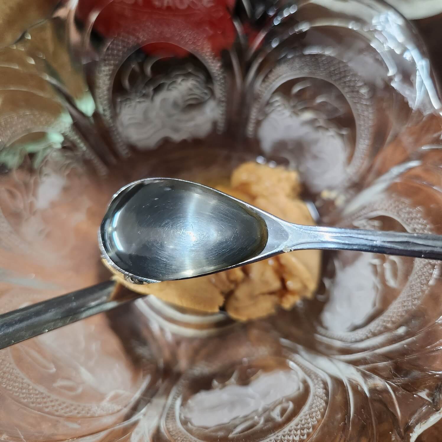 1. 마장소스 레시피는 숟가락 기준으로 땅콩버터 1, 물 2을 넣어주면 된다.