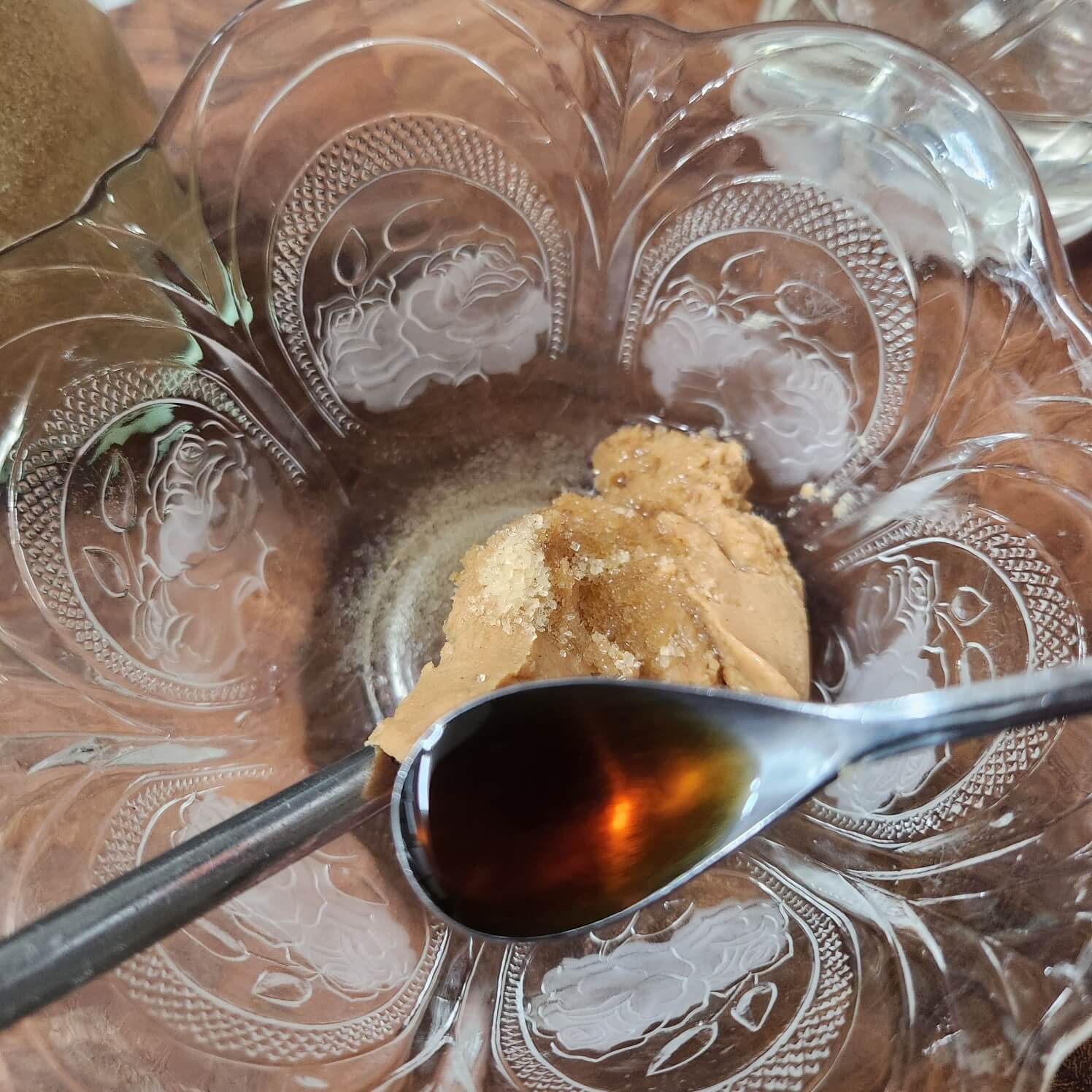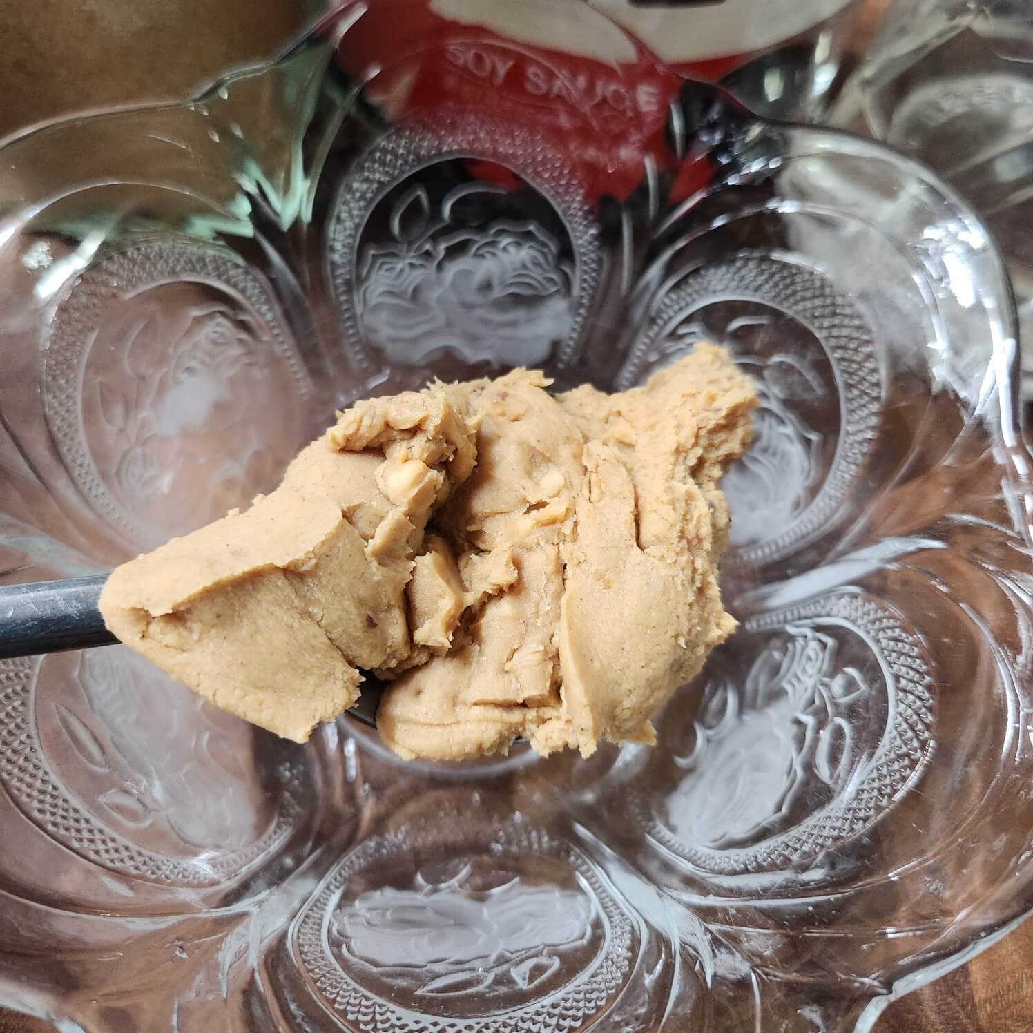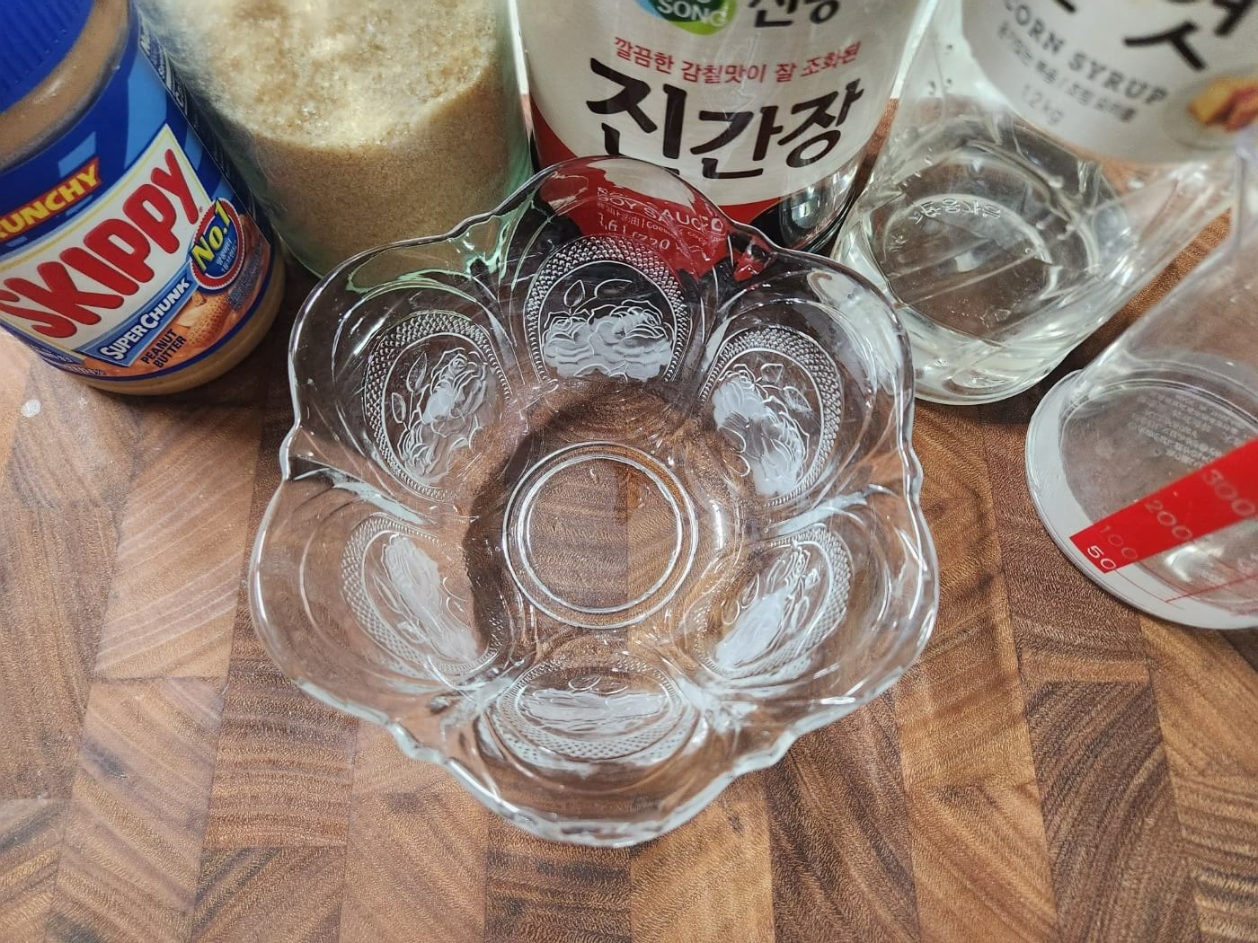- 숟가락 기준으로 땅콩버터 1, 물2, 티스푼 기준으로 진간장 1, 설탕 1, 물엿 1