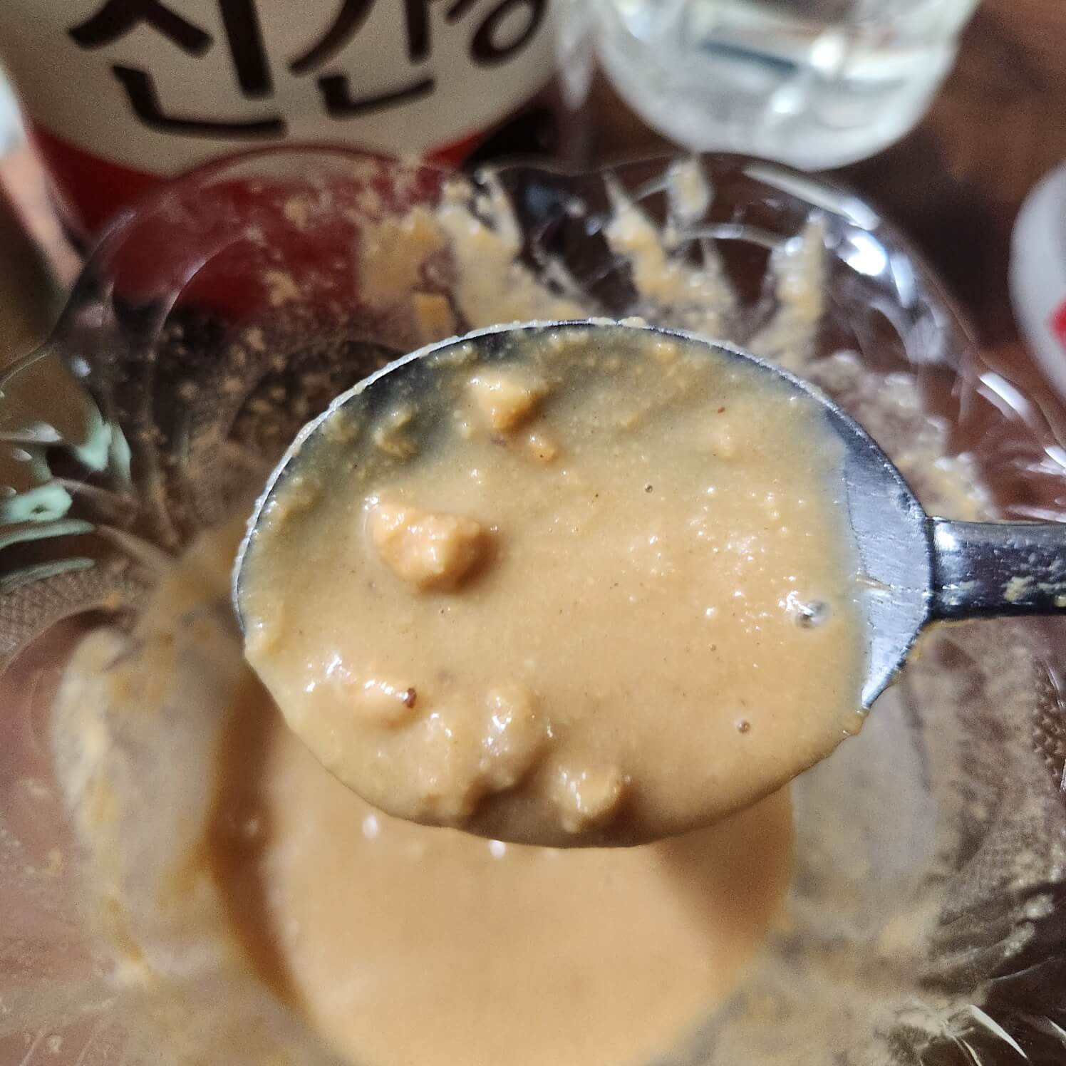 3. 마장소스 만들기는 처음에는 물과 땅코버터가 잘 섞이지 않지만 계속 저어주면 우리가 시켜 먹던 맛장소스 맛이 나게 된다.
