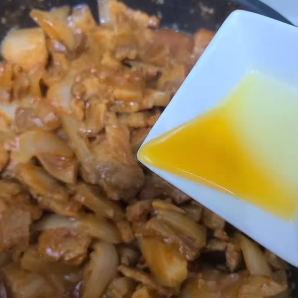 4. 마무리로 숟가락 기준으로 들기름 1 을 넣어주면 고기의 추가적인 잡내를 잡을 수 있어서 추가하면 풍미와 맛도 살 수 있으니 꼭 추가하면 좋다.